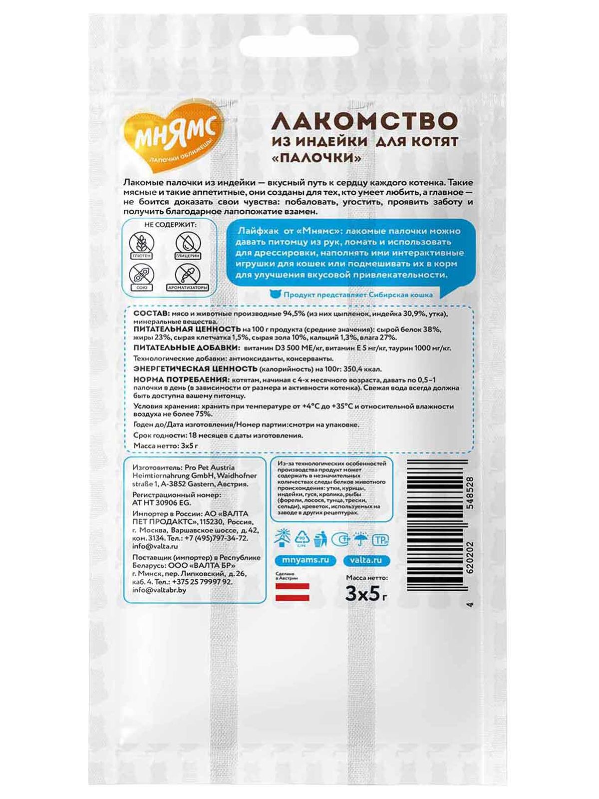 Лакомые палочки из индейки - вкусный путь к сердцу каждого котенка. Такие мясные и такие аппетитные, они созданы для тех, кто умеет любить, а главное - не боится дозакать свои чувства: побаловать, угостить, проявить заботу и получить благодарное лапопажатие взамен.