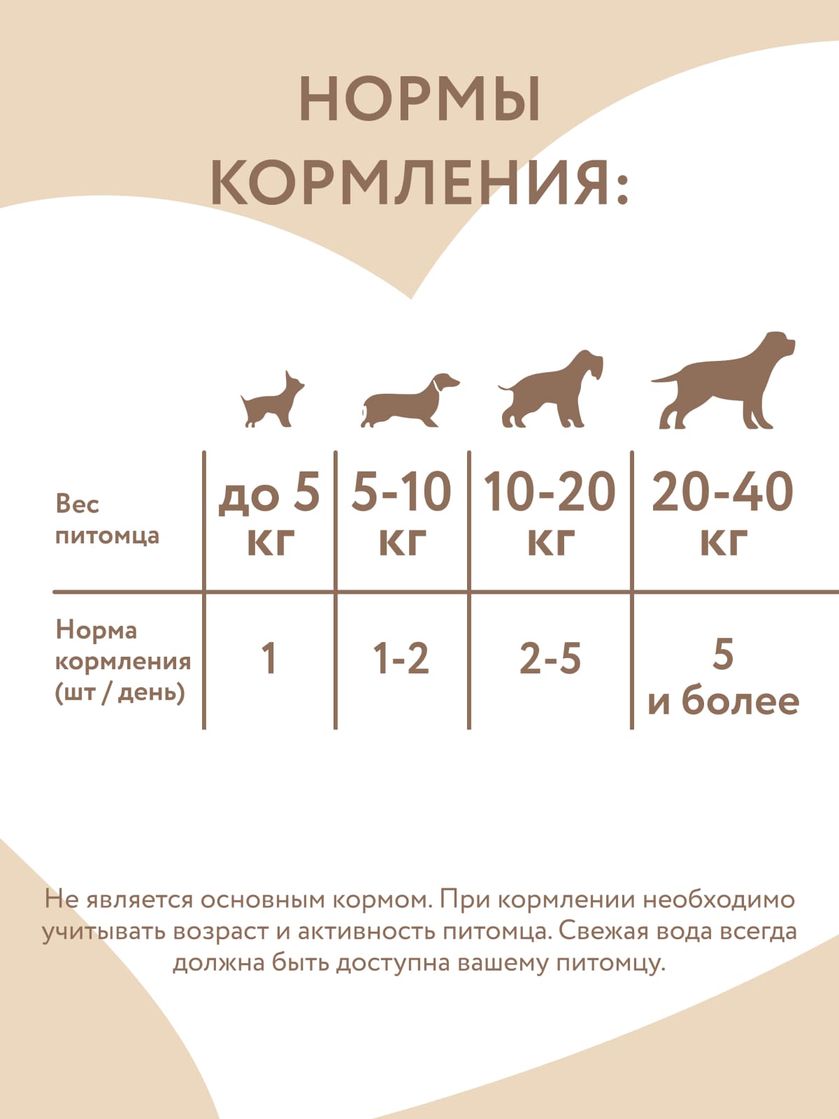 Норма потребления зависит от веса животного: вес до 5 кг - 1 шт/день, вес 5-10 кг - 1-2 шт/день, вес 10-25 кг - 2-5 шт/день, вес более 25 кг - более 5 шт/день.