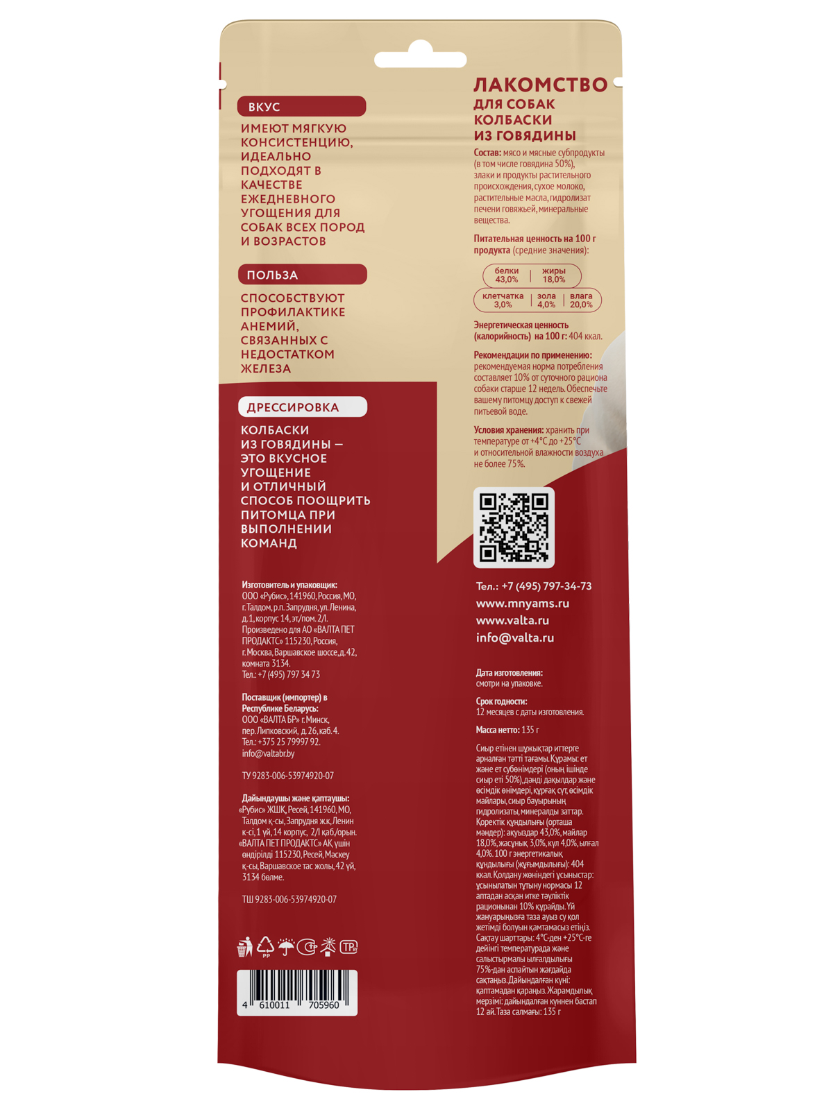 Состав: мясо и мясные субпродукты (в том числе говядина 50%), злаки и продукты растительного происхождения, сухое молоко, растительные масла, гидролизат печени говяжьей, минеральные вещества.