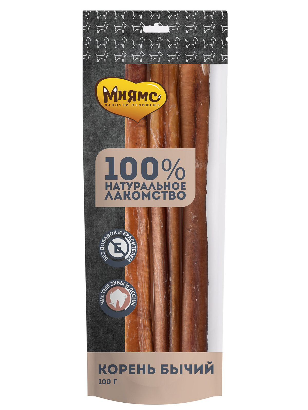 Лакомство Мнямс На каждый день для собак Корень бычий - Большое содержание аминокислот и микроэлементов оказывает положительное воздействие на общий обмен веществ собаки. Особенно любимое лакомство у собак всех пород и возрастов. Способствуют укреплению десен и жевательных мышц. Развивает челюсти, отвлекает собаку во время смены зубов.