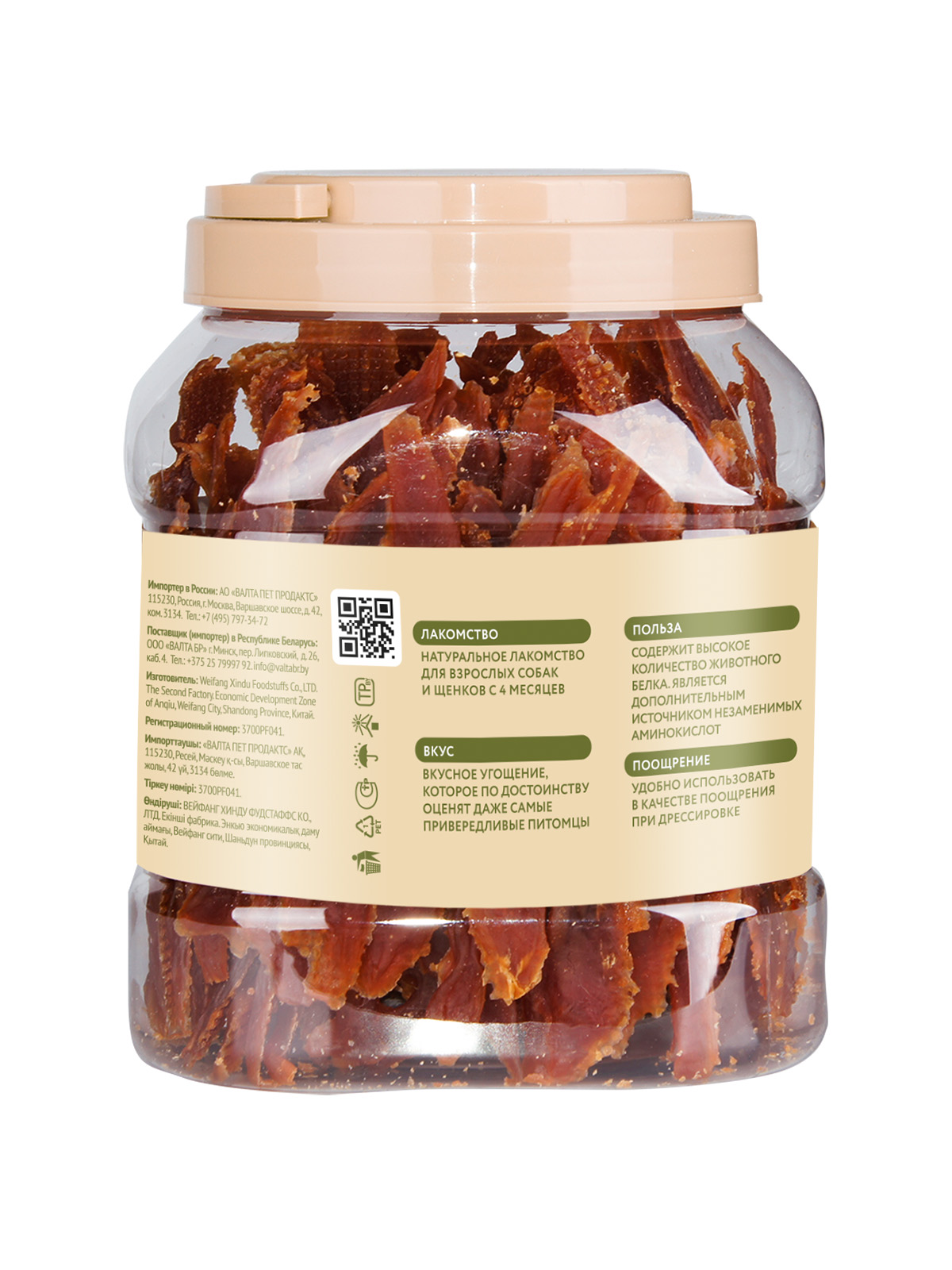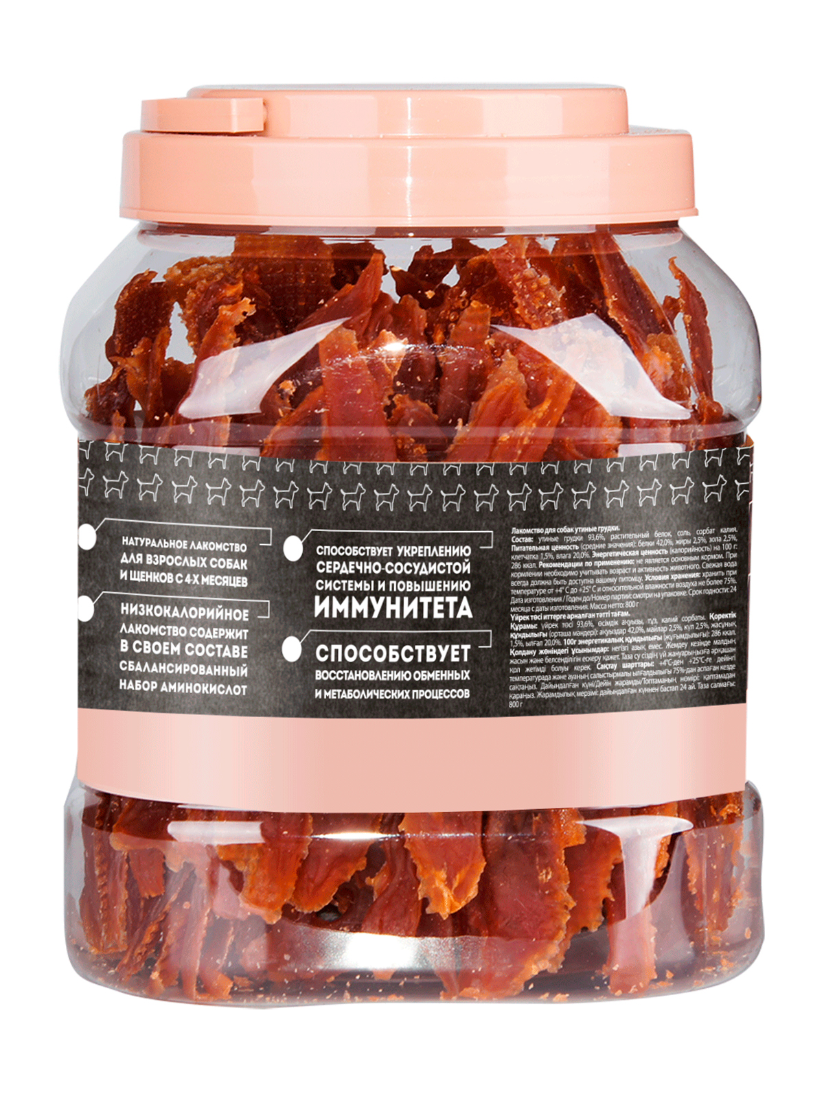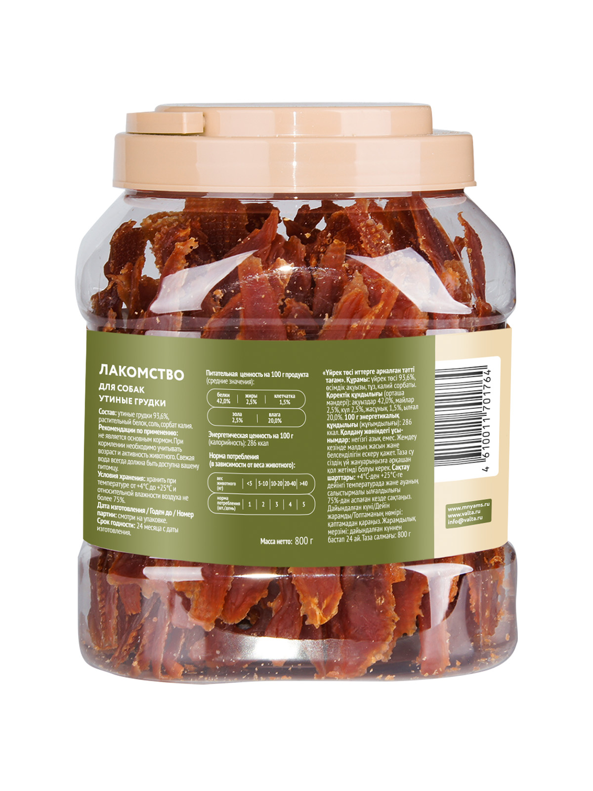 Состав: утка 93,6%, растительный белок 6%, соль, сорбат калия.