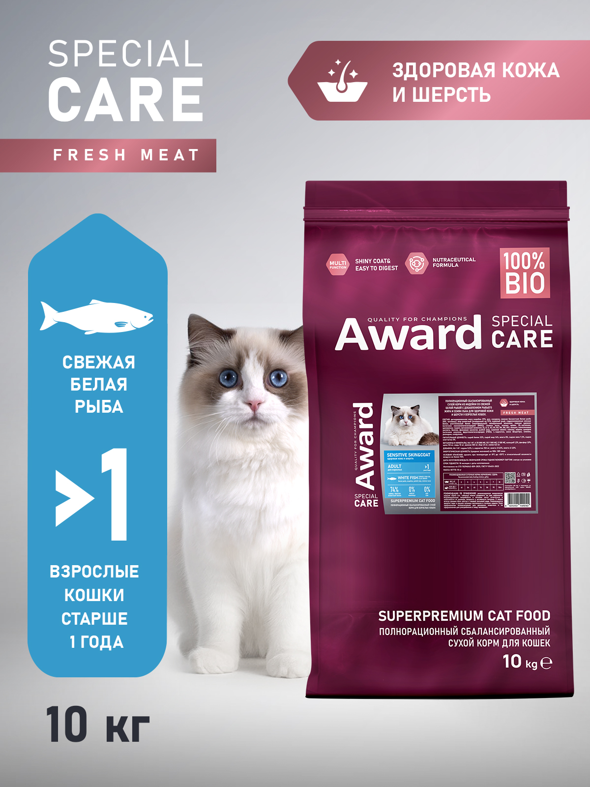Сбалансированный сухой корм со свежей белой рыбой с добавлением рыбьего жира и семян льна - это функциональное питание для взрослых кошек, которое способствует уменьшению воспалений, улучшению состояния кожи и восстановлению блеска шерсти, обеспечивая комплексную заботу о здоровье вашего питомца на долгие годы.