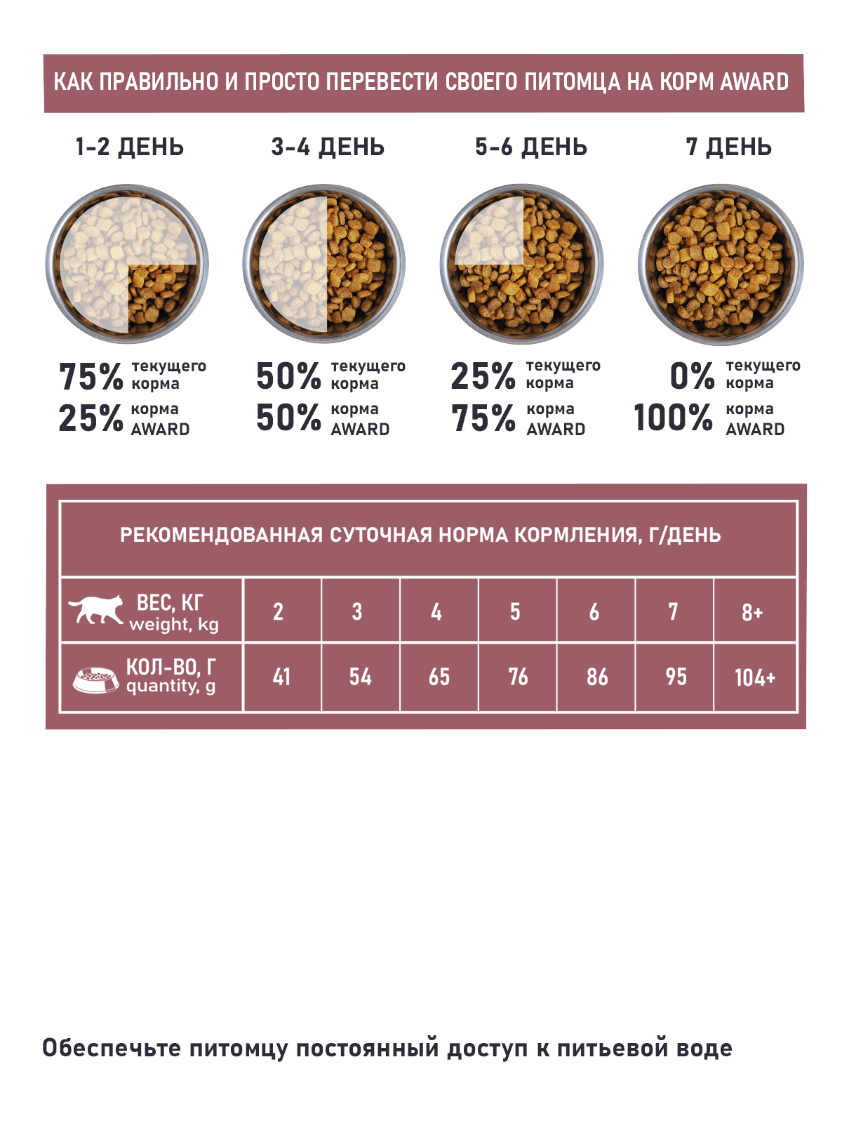 | Рекомендованная суточная норма кормления, Г/ДЕНЬ Recommended daily feeding intakes, g/day |