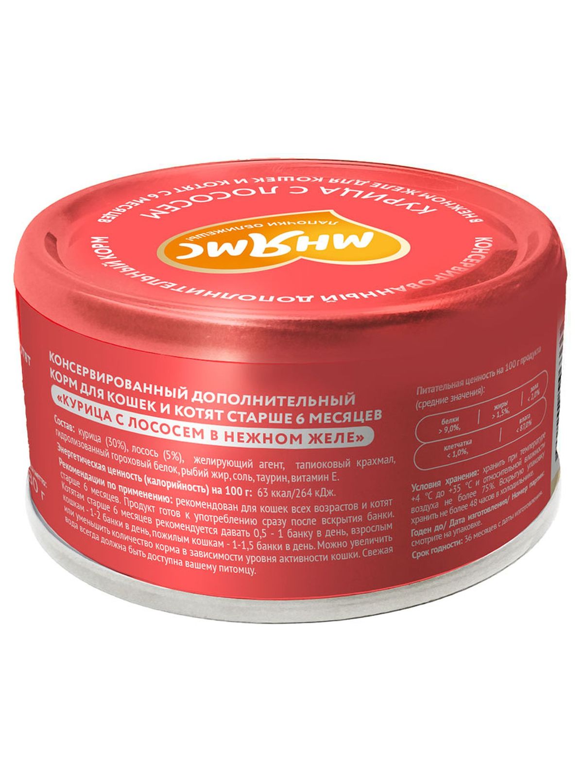 «Мнямс» консервированный дополнительный корм для для кошек и котят старше 6 месяцев «Курица в нежном желе" гарантирует, что ваш питомец получит только качественный и вкусный продукт, который прекрасно разнообразит его рацион, поддержит здоровье и обеспечит энергией.
