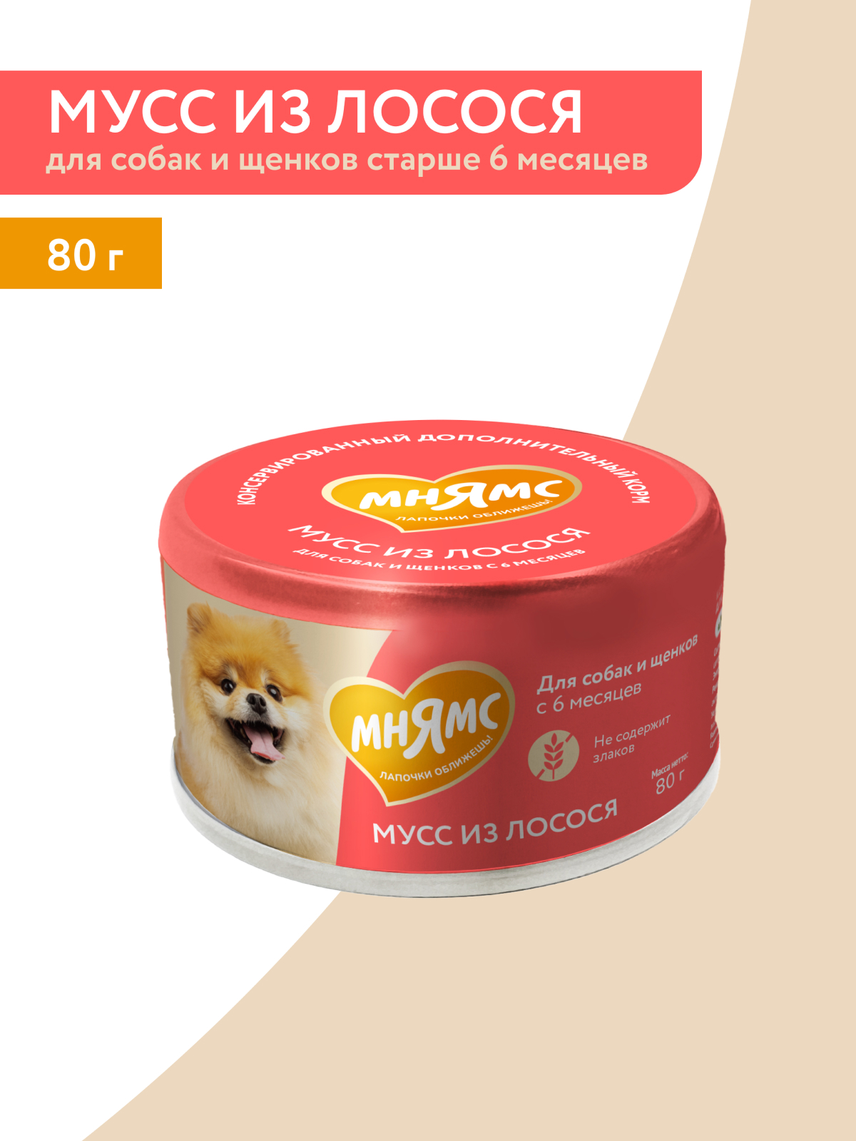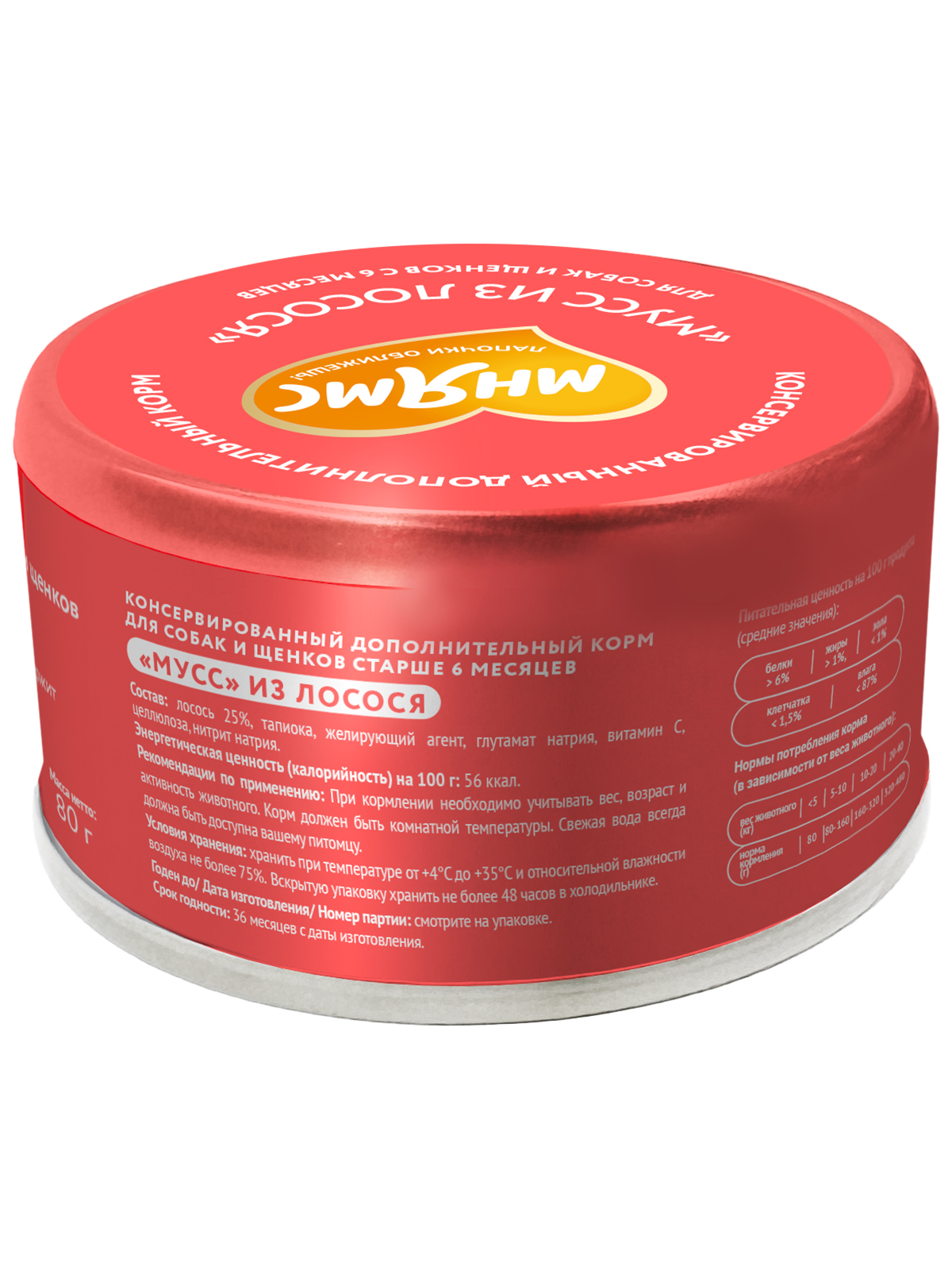 «Мнямс» консервированный дополнительный корм для собак и щенков старше 6 месяцев «мусс» из лосося гарантирует, что ваш питомец получит только качественный и вкусный продукт, который прекрасно разнообразит рацион любимца, поддержит его здоровье и жизненную энергию.
