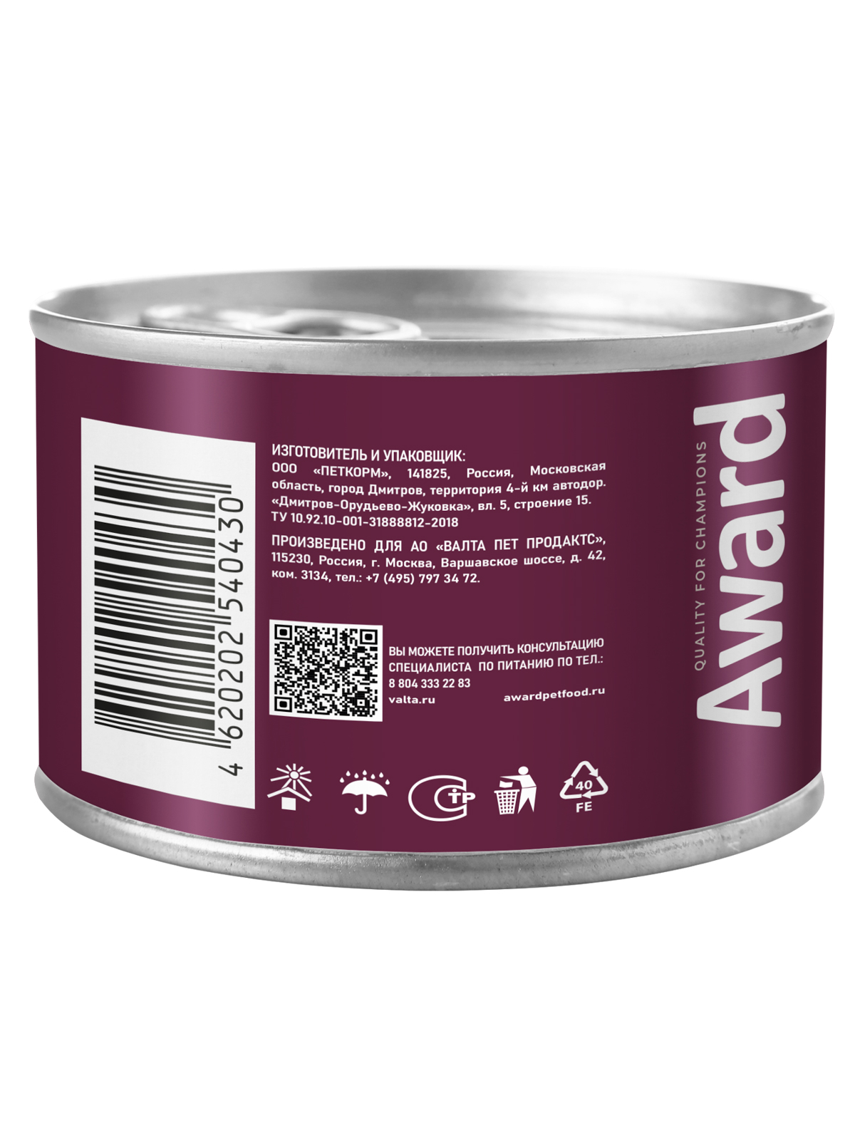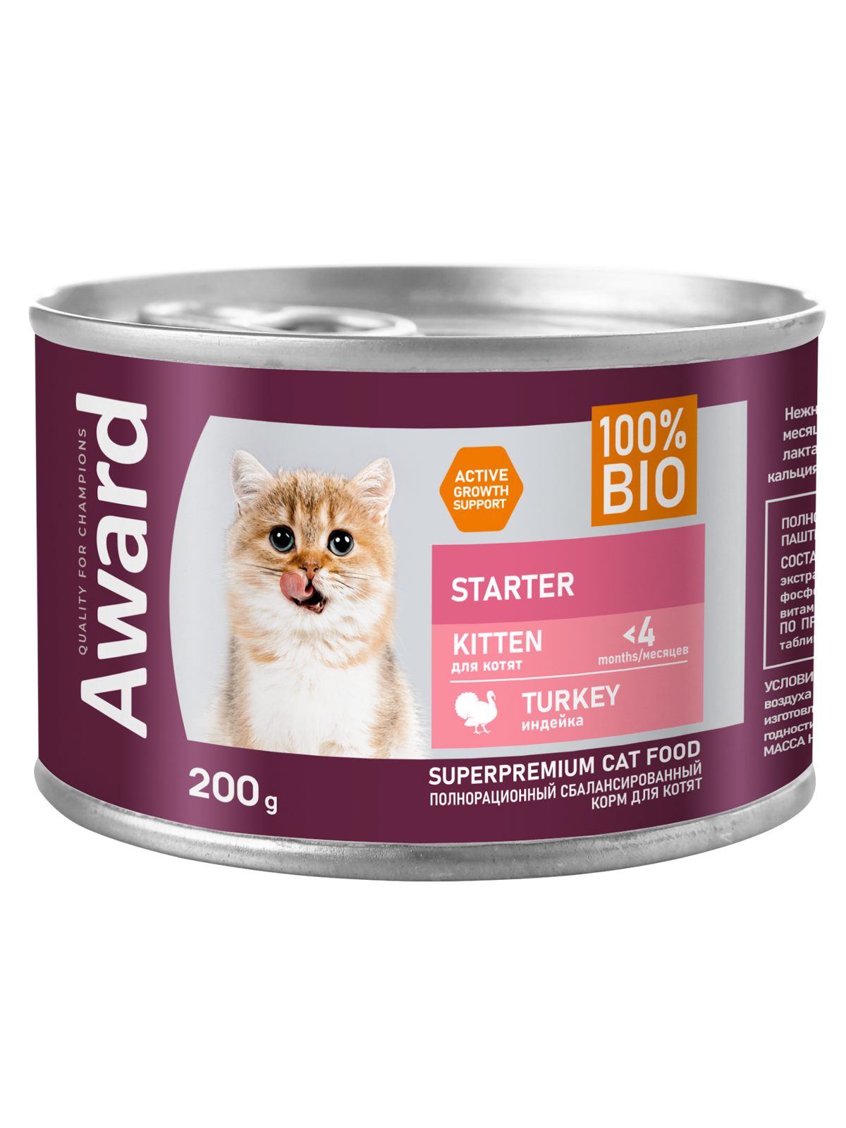 Влажный корм AWARD для котят с начала прикорма до 4 месяцев, беременных и кормящих кошек паштет из индейки.