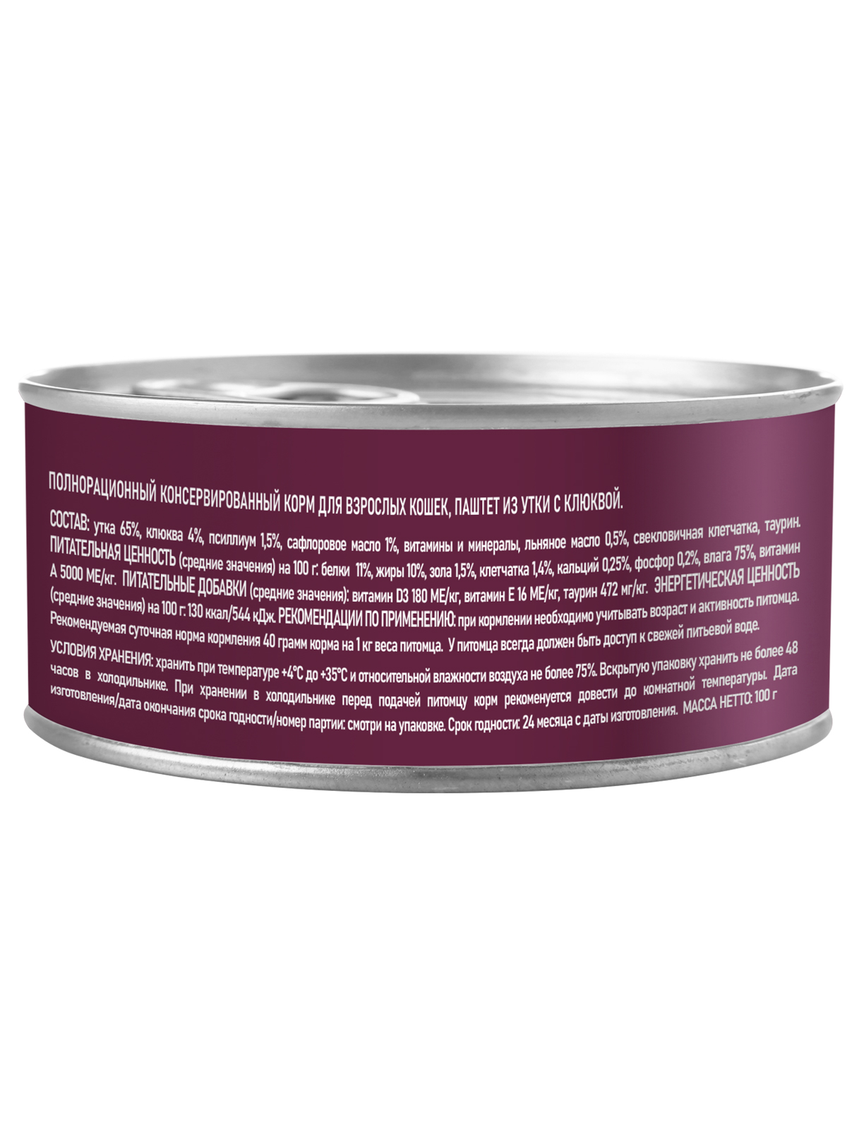 Паштет из утки с кусочками клюквы для взрослых кошек - это монопротеиновое сбалансированное питание для любимого питомца, изготовленное из одного вида мясного белка без содержания зерна и глютена, с добавлением овощей и фруктов богатых витаминами и минералами.