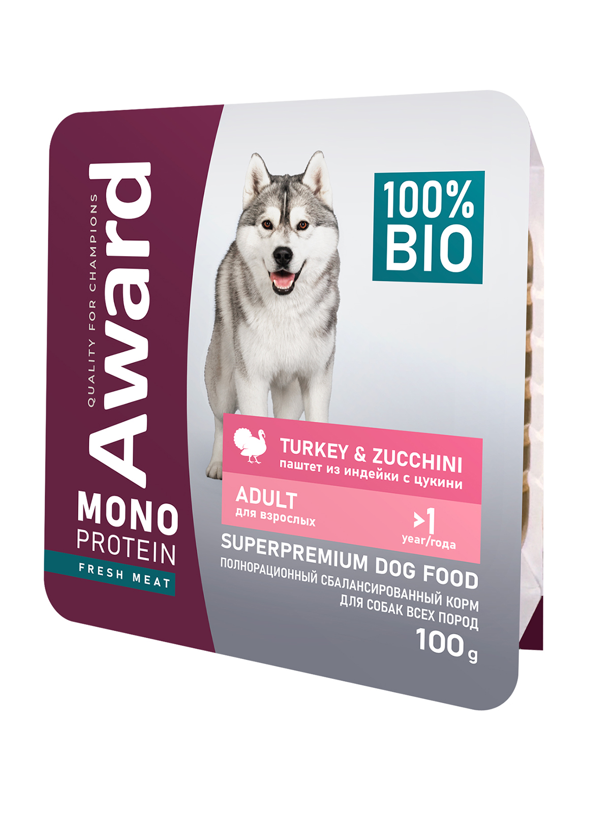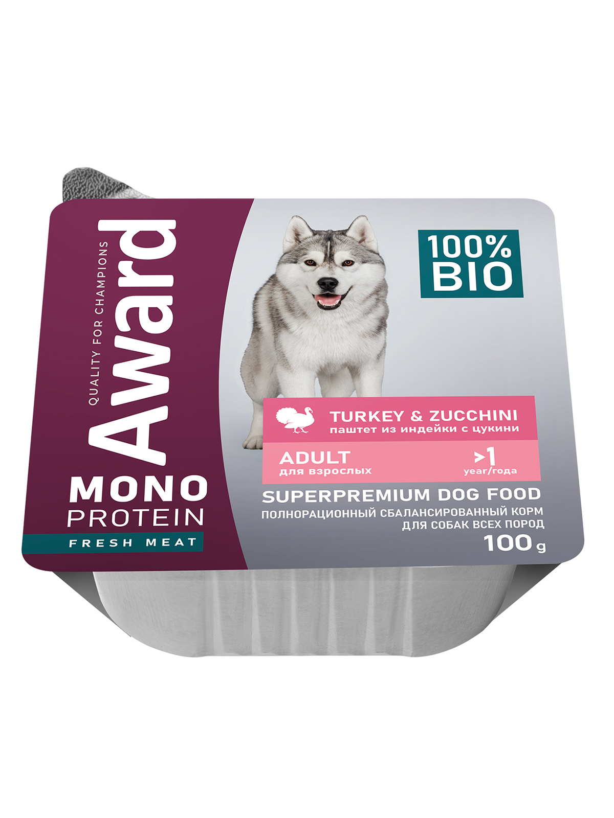 Монопротеиновый паштет из свежего мяса индейки идеально подойдет для собак с чувствительным пищеварением и аллергией на другие источники белка.
