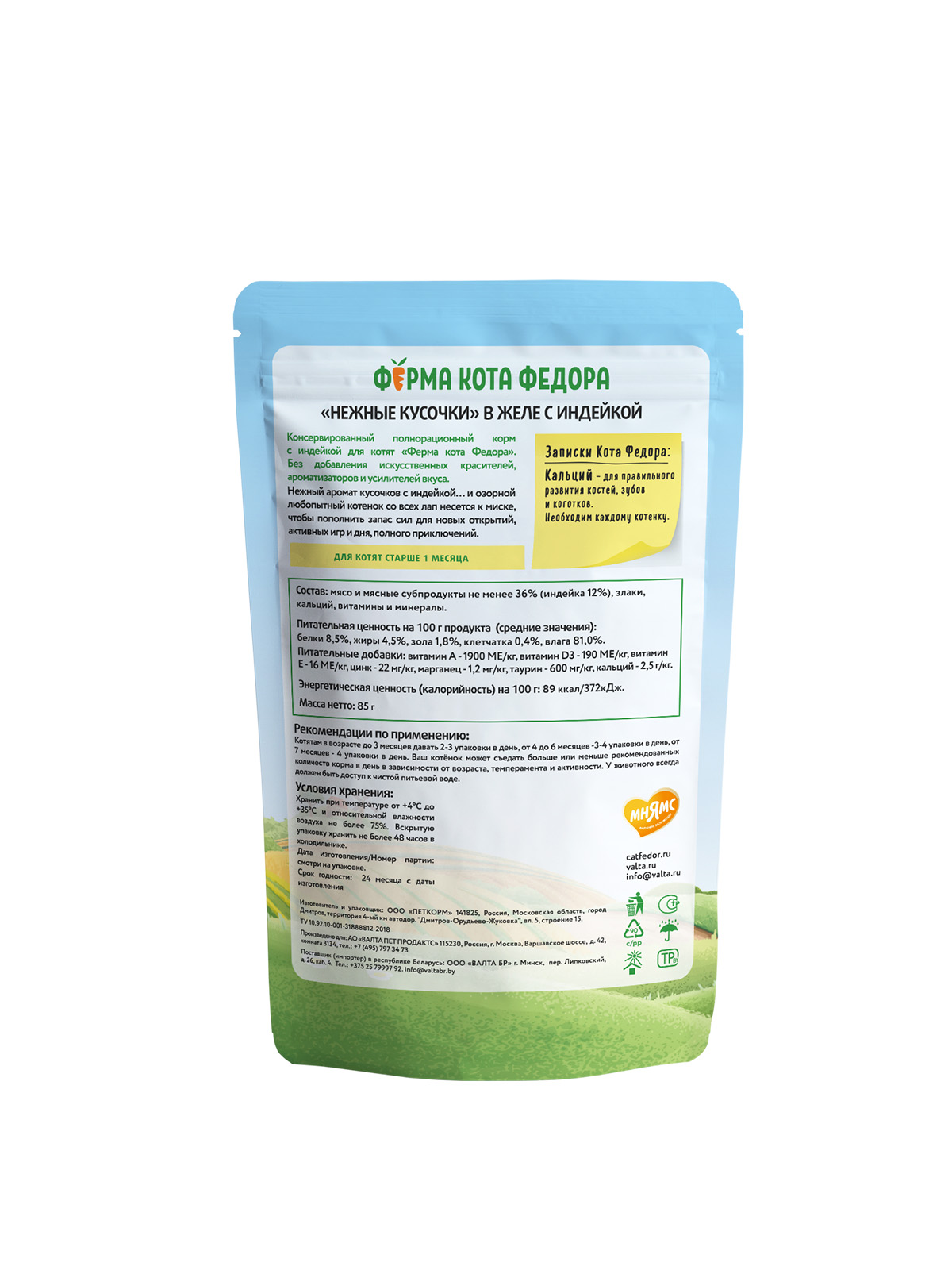 Влажный корм с Фермы кота Фёдора - это сбалансированный рацион, который обязательно понравится вашему котенку.