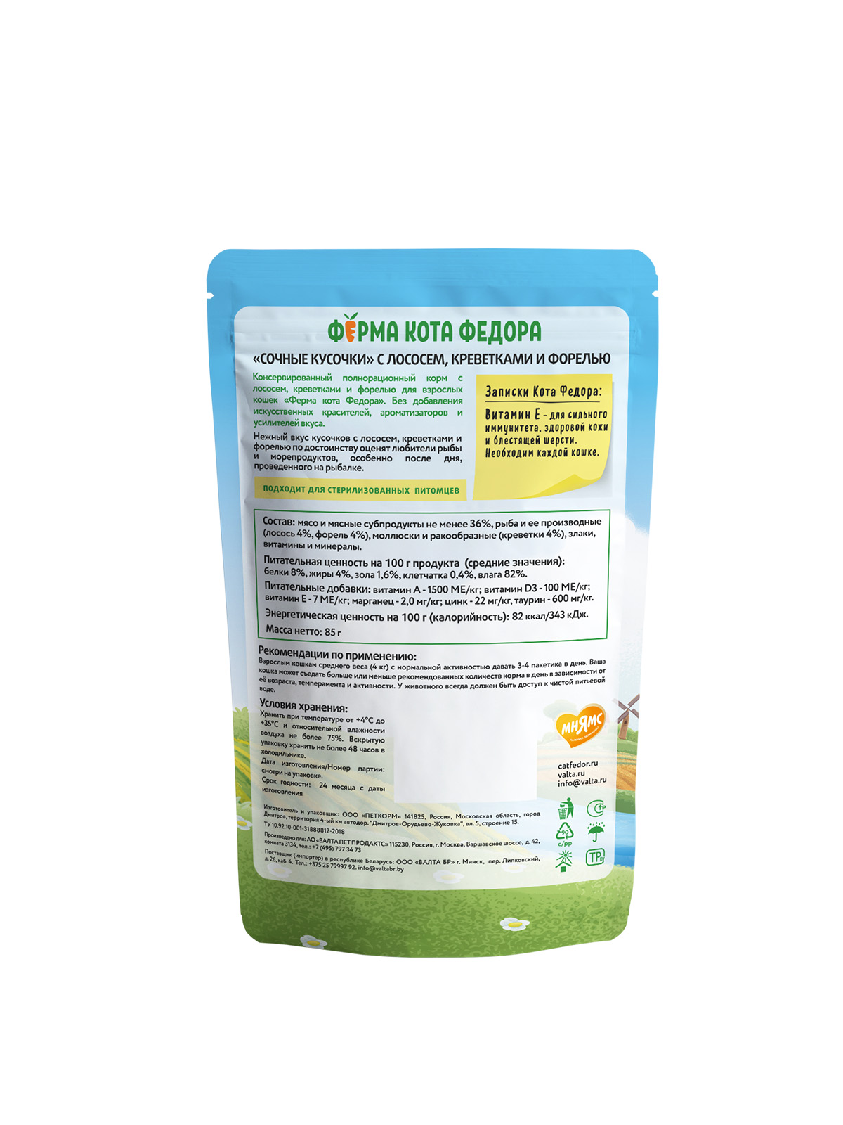 Нет ГМО, сои, консервантов, ароматизаторов, усилителей вкуса и искусственных красителей. Кот Фёдор рекомендует!