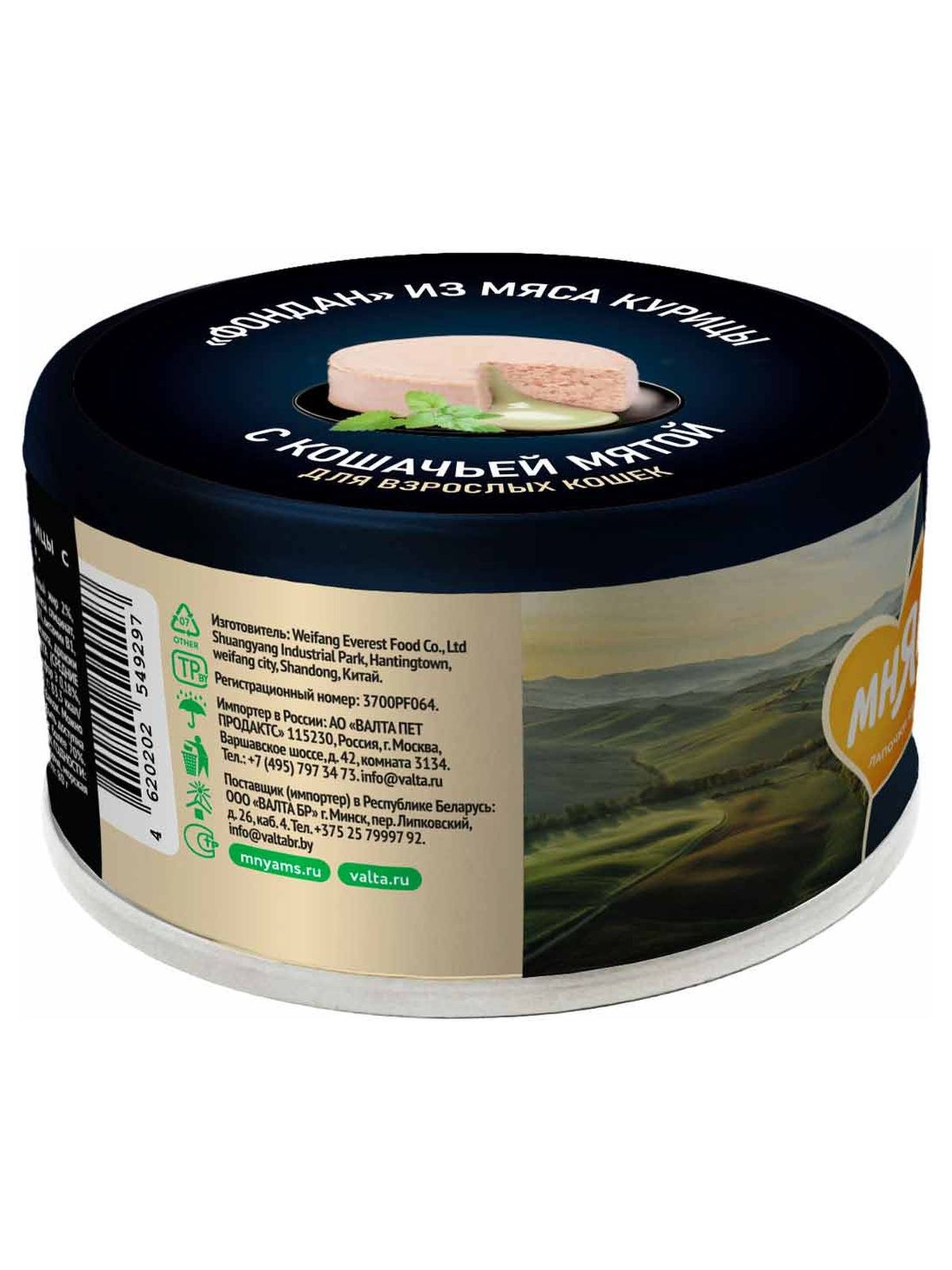 СОСТАВ: мясо курицы 58%, вода, куриная печень 8%, куриное сердце 4%, желток куриного яйца (порошок) 2%, куриный жир 2%, измельченная кошачья мята, измельченное льняное семя, карбонат кальция, витаминно-минеральный комплекс (хелат железа глицинат, хелат меди глицинат, комплекс метионина цинка, комплекс метионина марганца, йодат кальция, ацетат витамина А, витамин D3, витамин B1, витамин B2, ниацин, витамин B6, витамин B12, DL-α-токоферола ацетат, D-пантотенат кальция, D-биотин, фолиевая кислота, дрожжи (обогащенные селеном), холина хлорид), фруктоолигосахариды, таурин.
