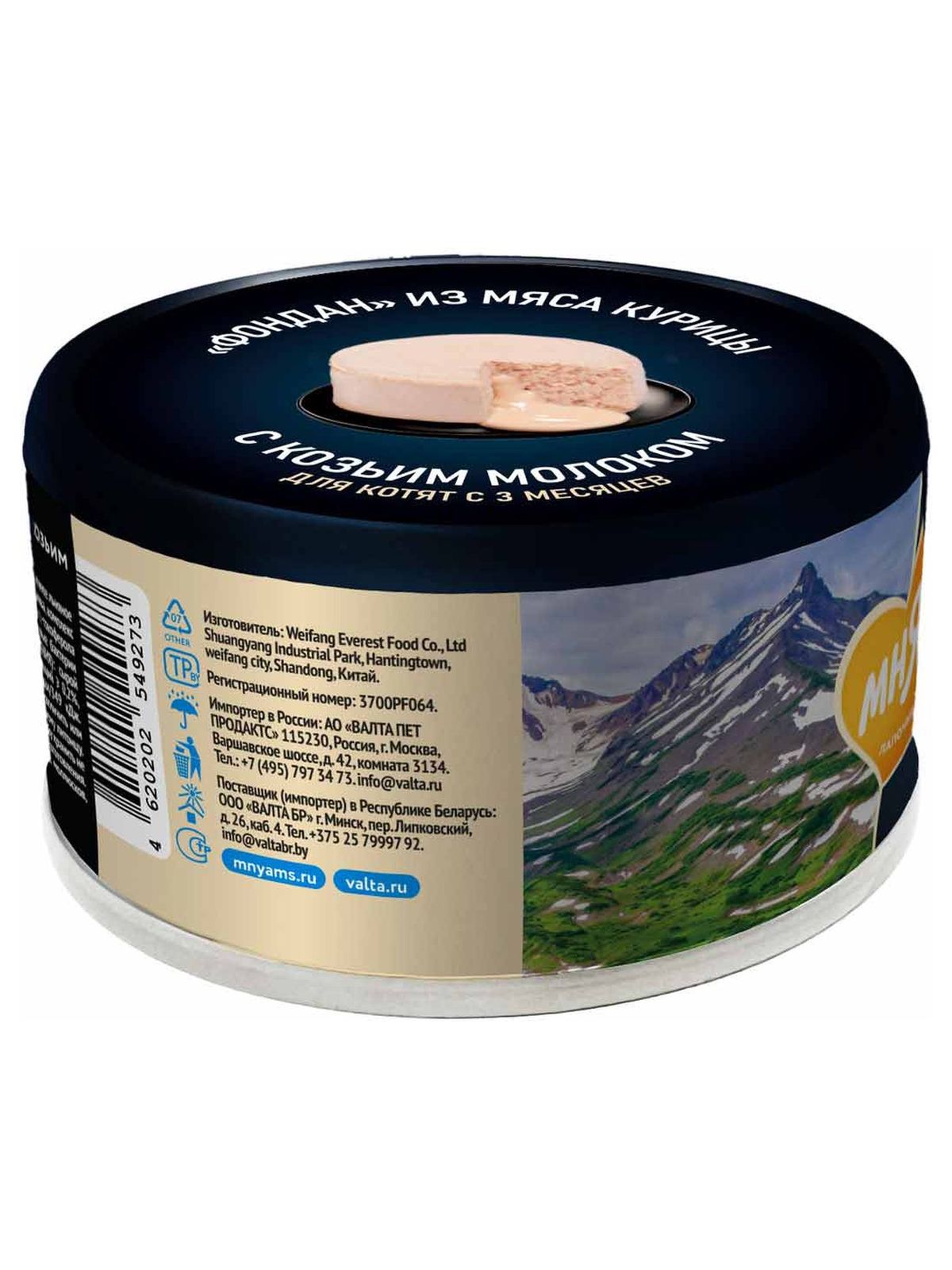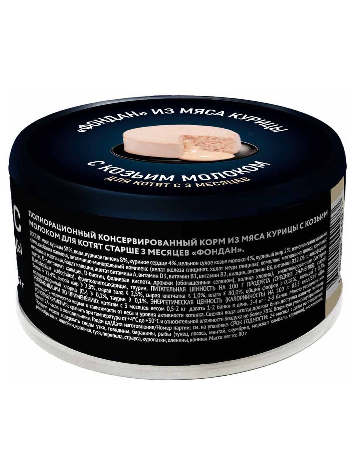 СОСТАВ: мясо курицы 58%, вода, куриная печень 8%, куриное сердце 4%, цельное сухое козье молоко 4%, куриный жир 2%, измельченное льняное семя, карбонат кальция, витаминно-минеральный комплекс (хелат железа глицинат, хелат меди глицинат, комплекс метионина цинка, комплекс метионина марганца, йодат кальция, ацетат витамина А, витамин D3, витамин B1, витамин B2, ниацин, витамин B6, витамин B12, DL-α-токоферола ацетат, D-пантотенат кальция, D-биотин, фолиевая кислота, дрожжи (обогащенные селеном), холина хлорид), инактивированные бактерии (Lactobacillus acidophilus), фруктоолигосахариды, таурин.
