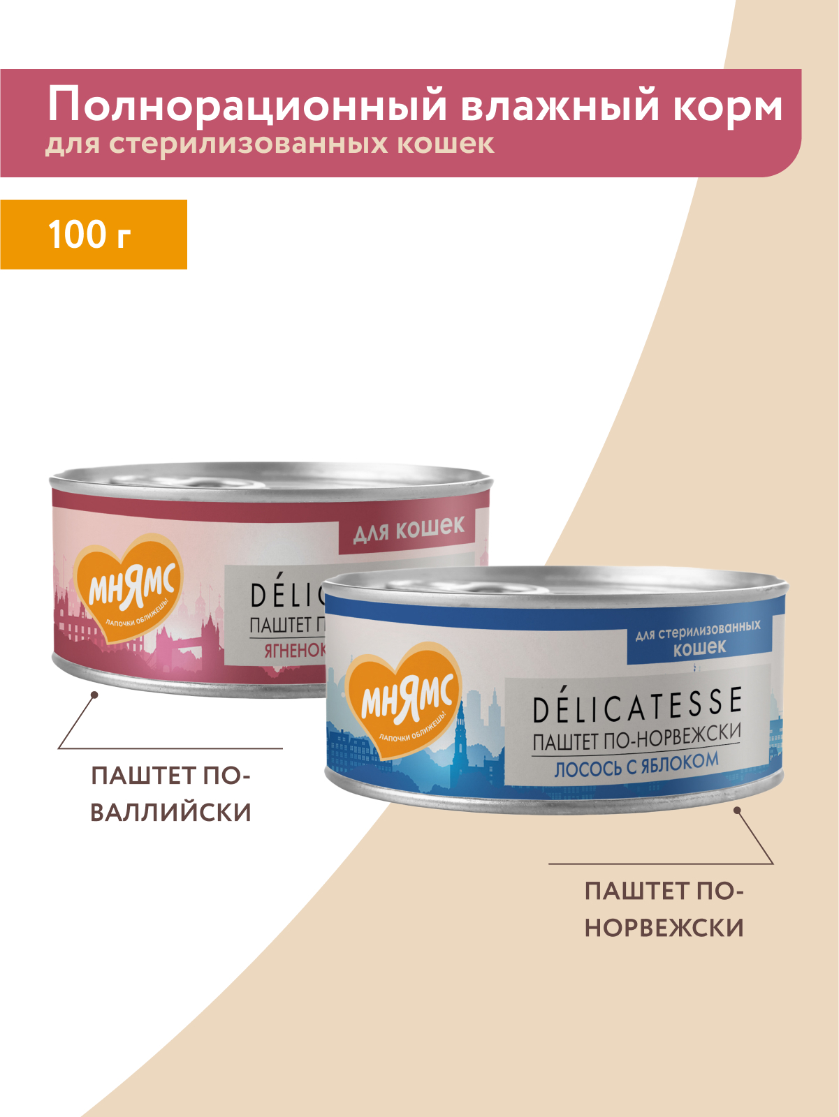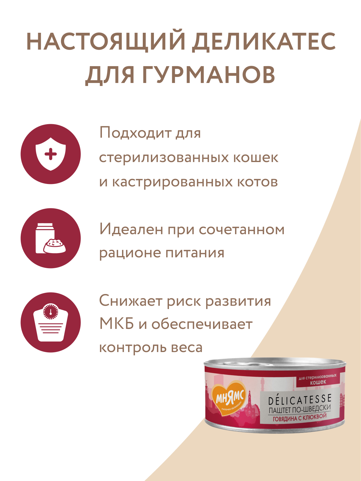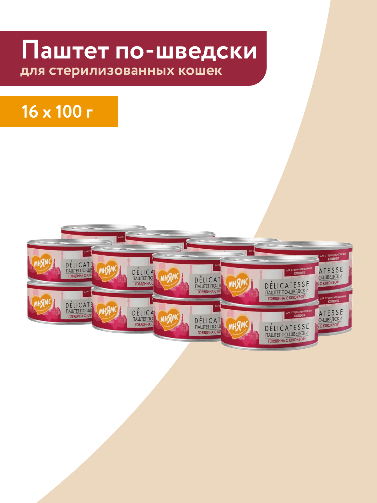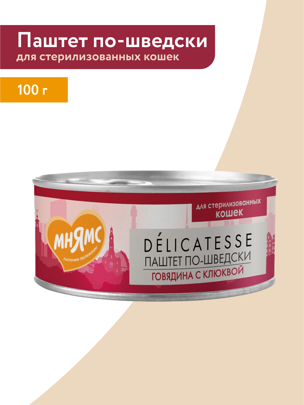 Влажный корм Мнямс Деликатес Говядина с клюквой для стерилизованных кошек "Паштет по-шведски" 100 г.