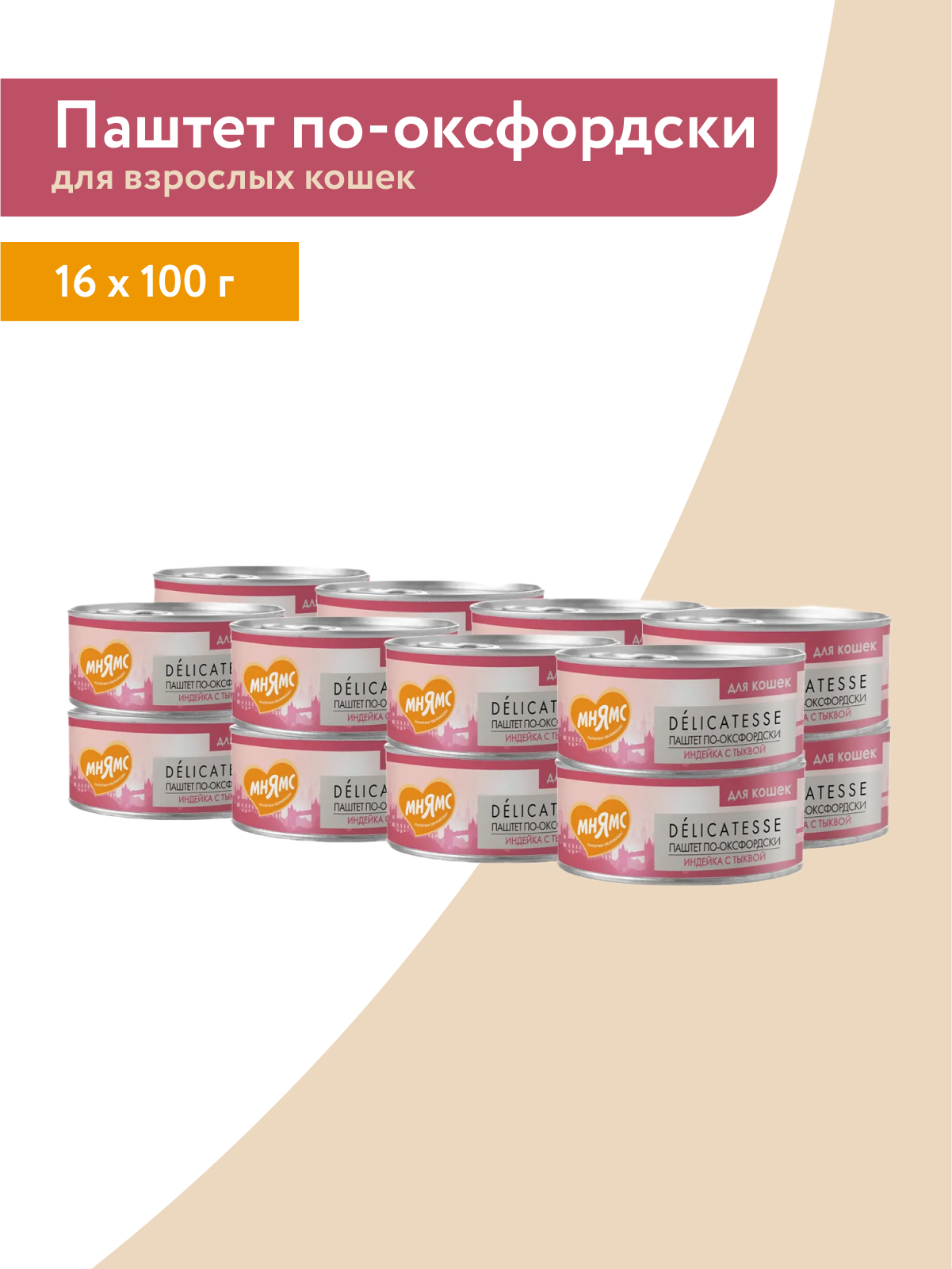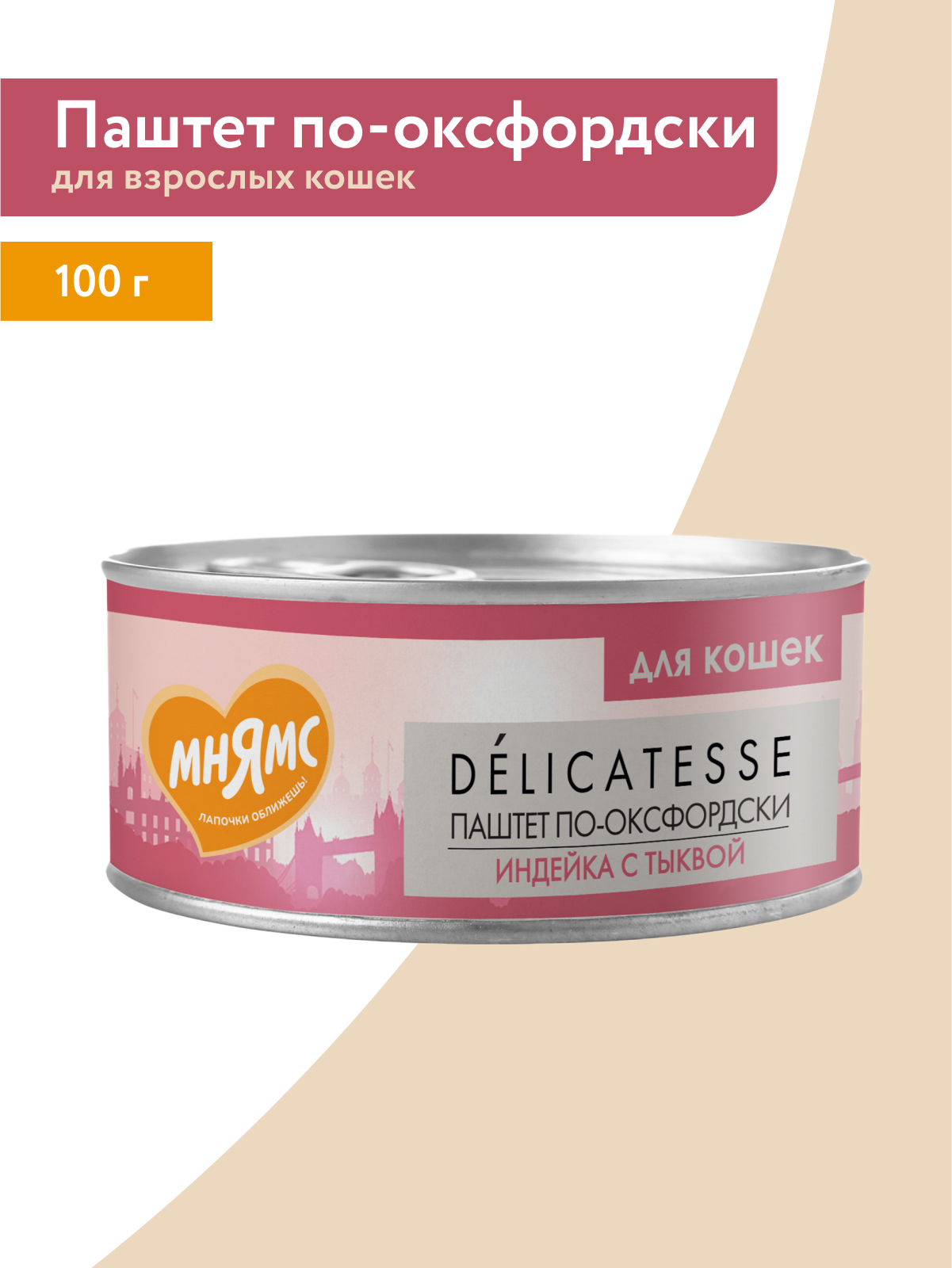 Влажный корм Мнямс Деликатес Индейка с тыквой для кошек "Паштет по-оксфордски" 100 г.