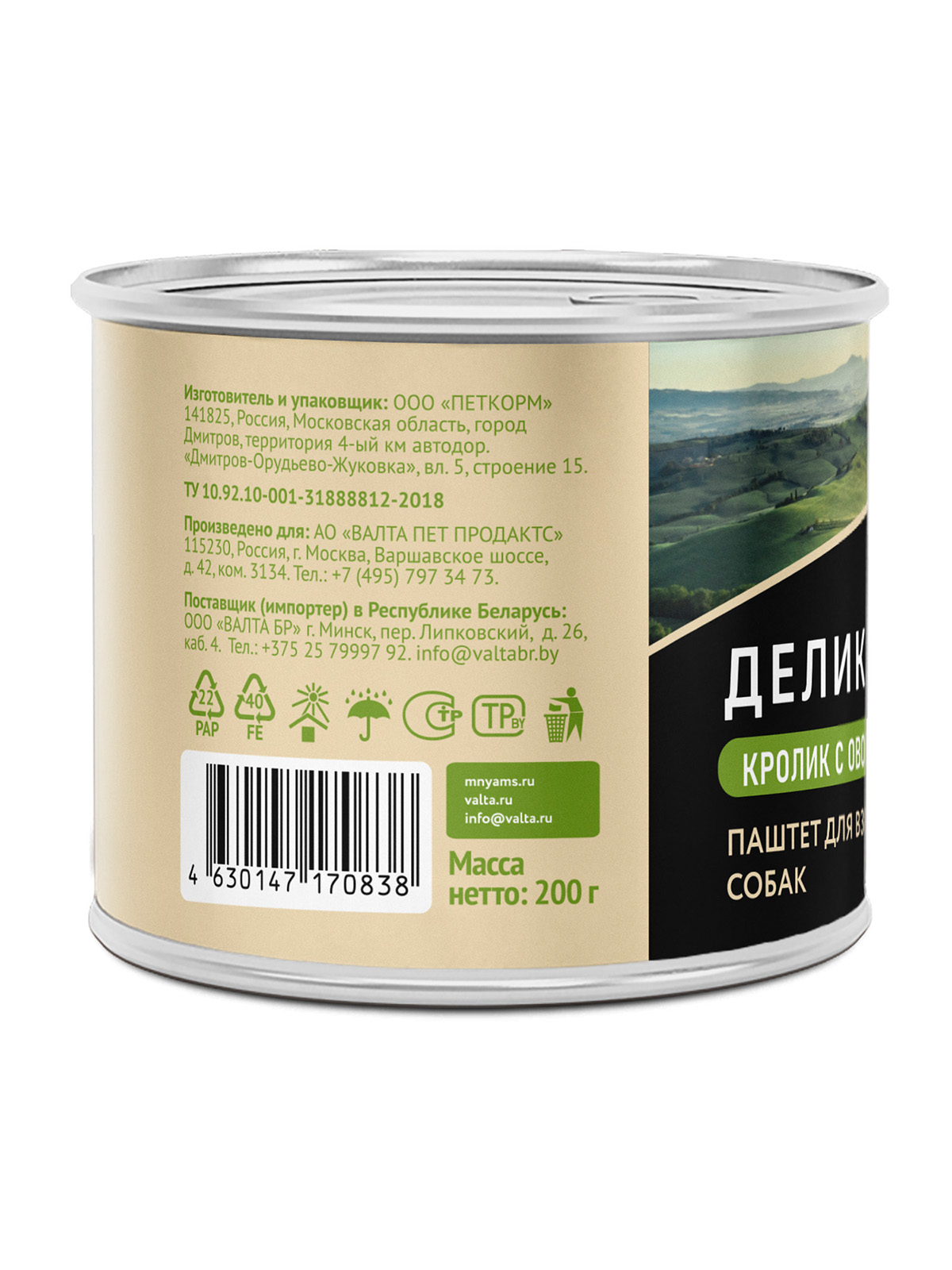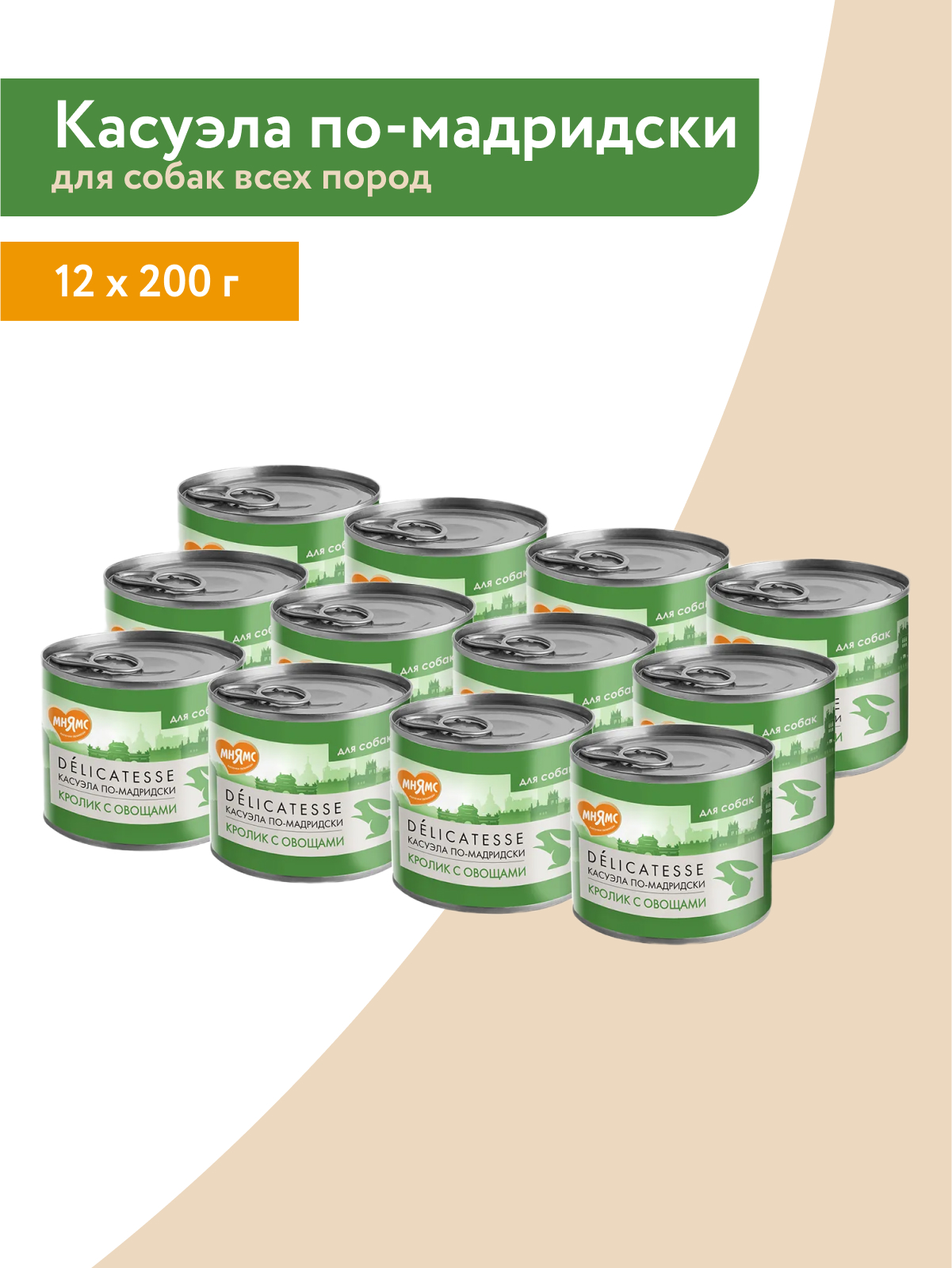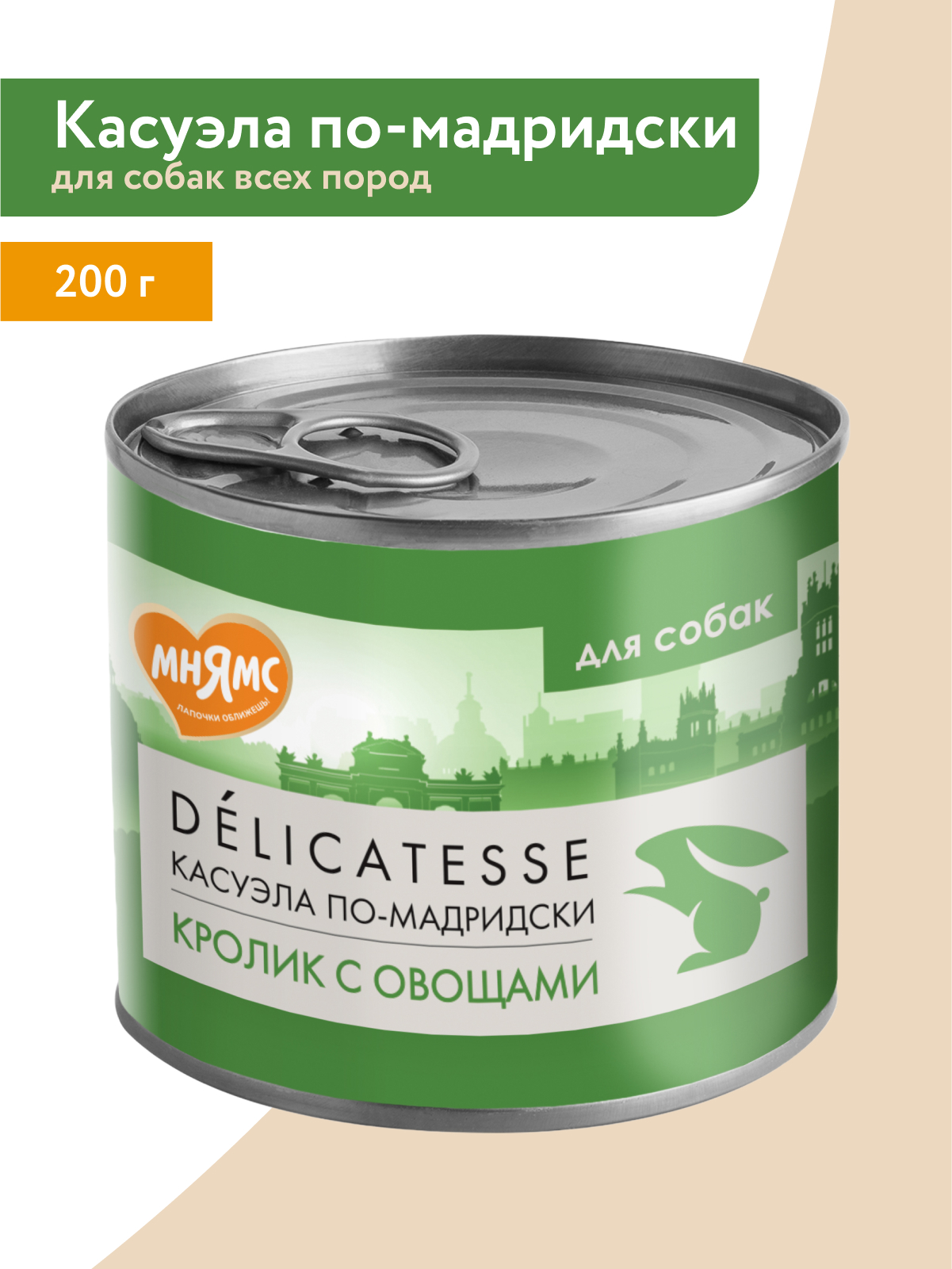Влажный корм Мнямс Деликатес Паштет из кролика с овощами для собак всех пород "Касуэла по-мадридски" 200 г.