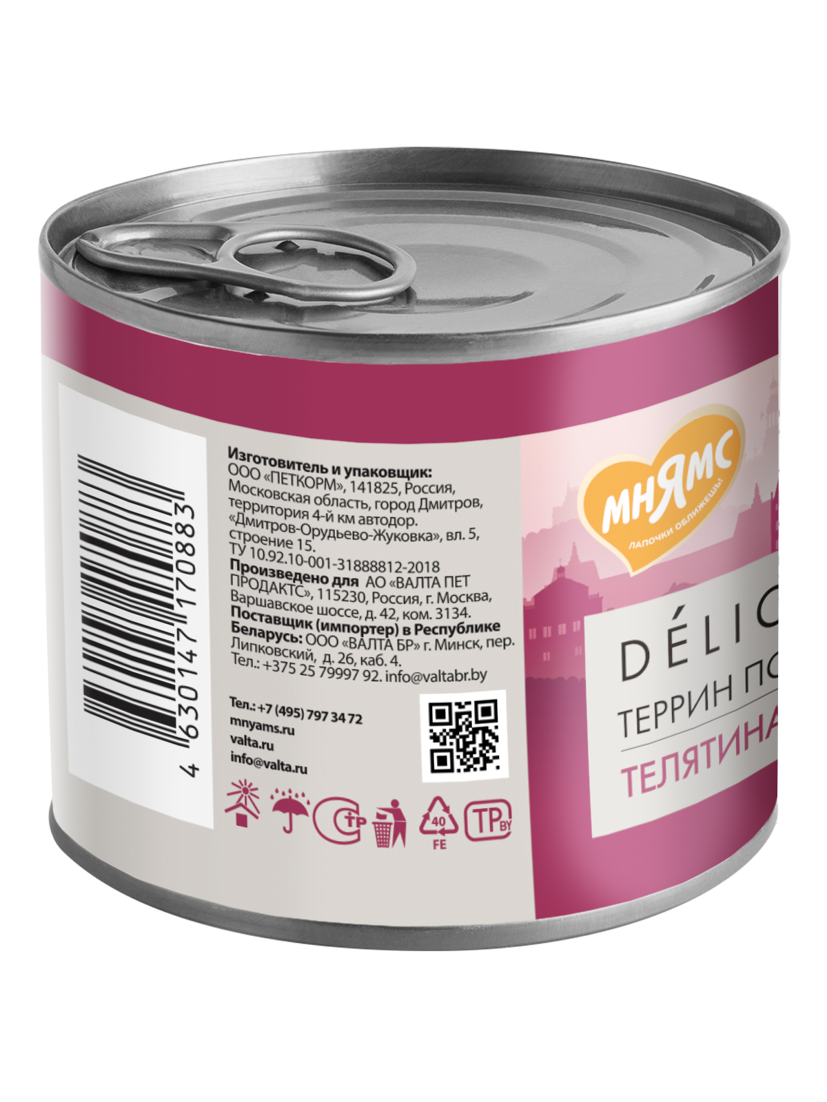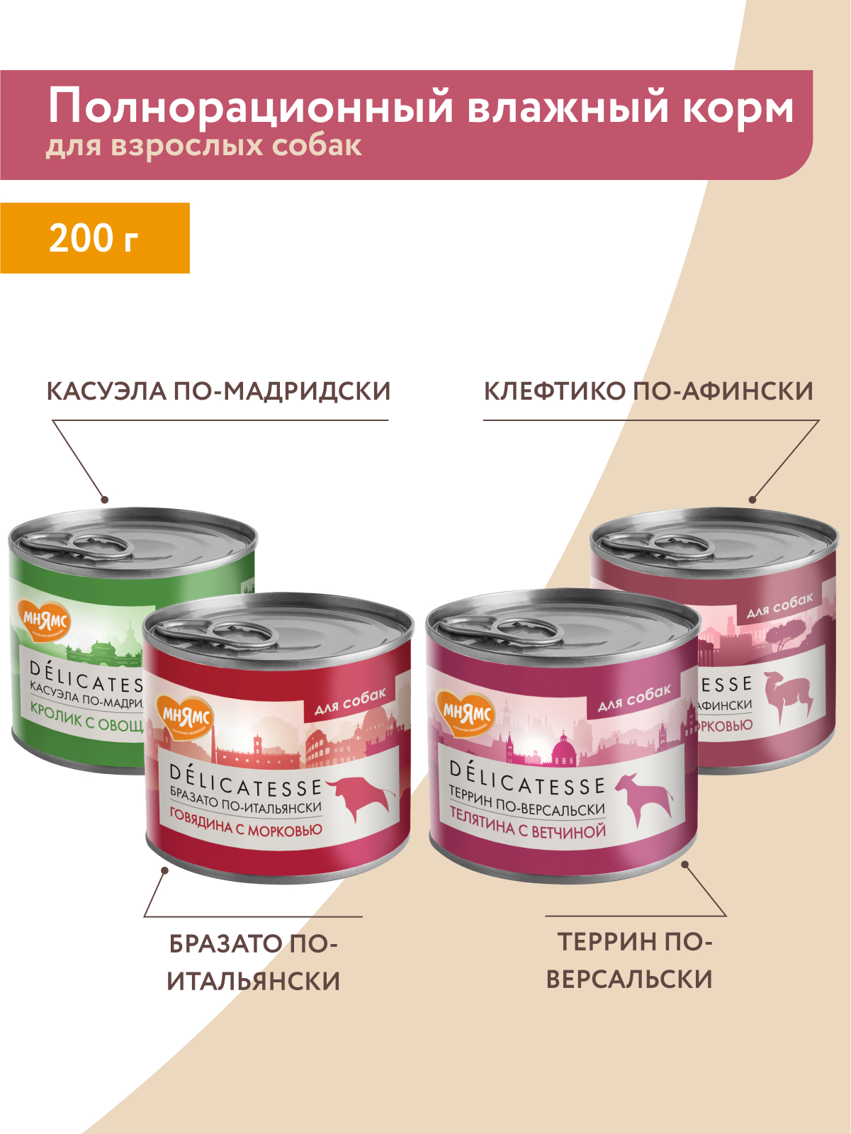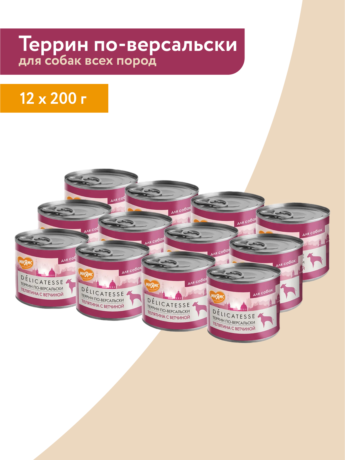 Влажный корм Мнямс Деликатес Паштет из телятины с ветчиной для собак всех пород "Террин по-версальски" 200 г.