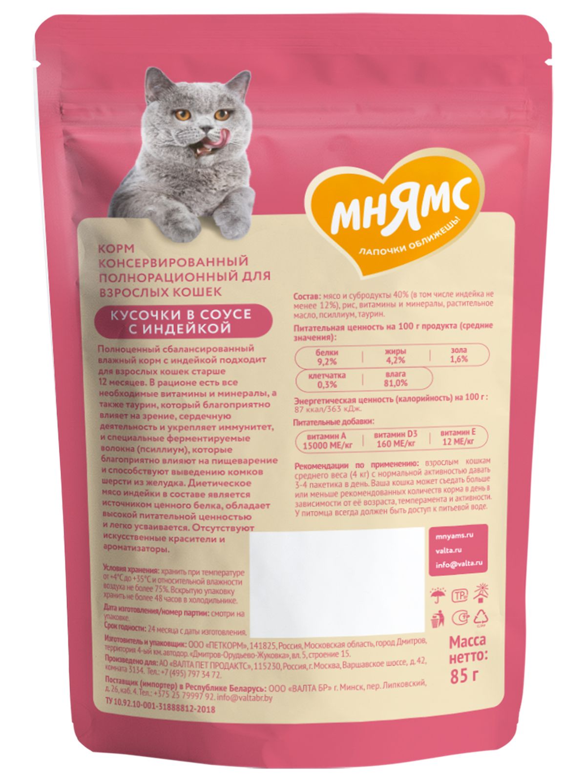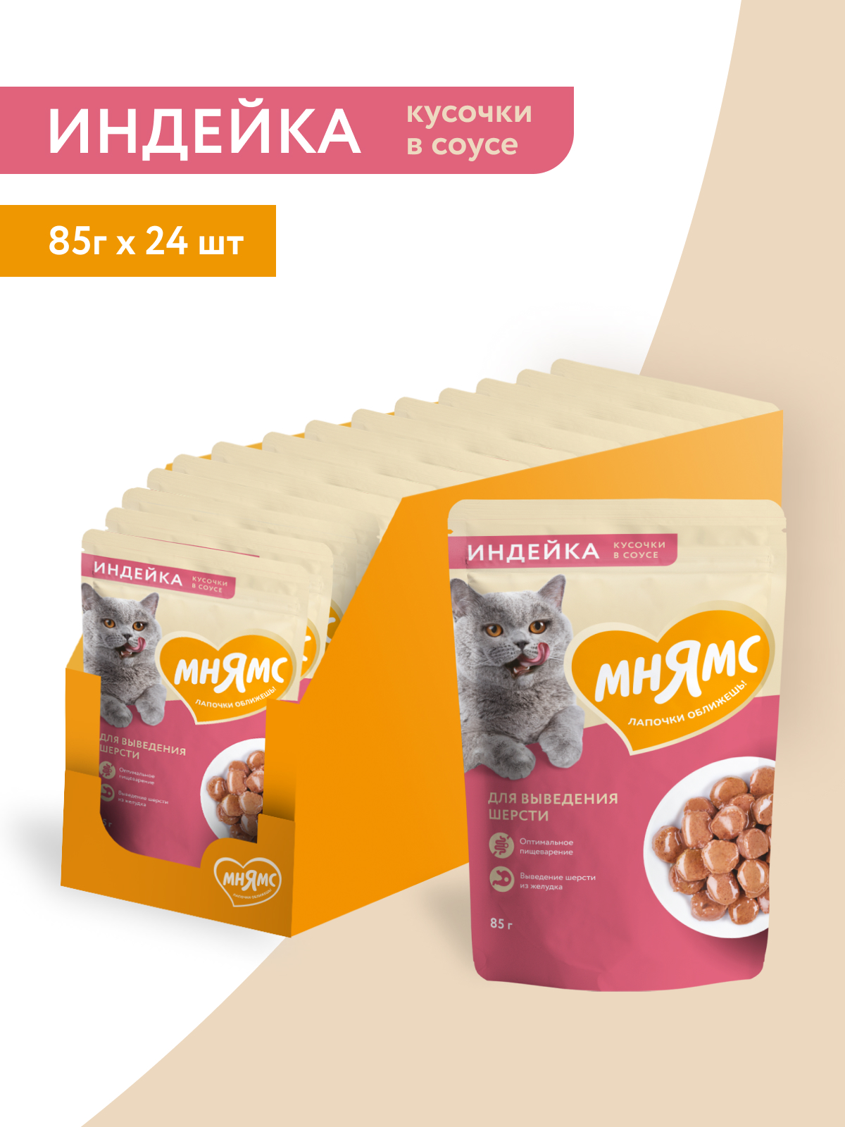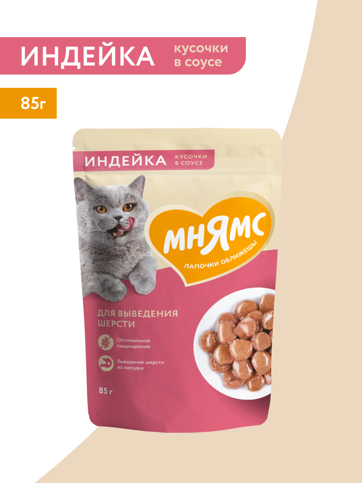 Высококачественный полнорационный сбалансированный влажный корм с индейкой для профилактики и вывода волосяных комочков шерсти из желудочно-кишечного тракта подходит для взрослых кошек старше 12 месяцев.