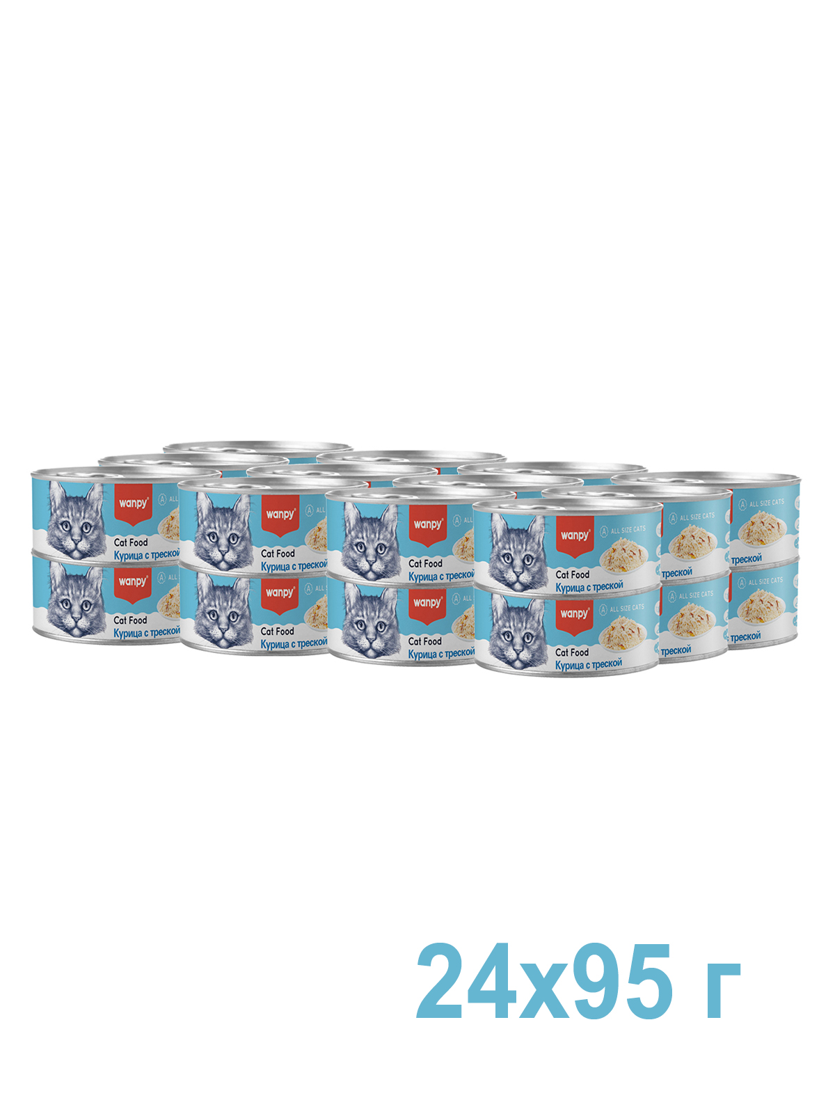 Wanpy Cat консервы для кошек "Курица с треской" - это высококачественный сбалансированный корм, который обеспечит вашего питомца необходимыми витаминами и минералами.
