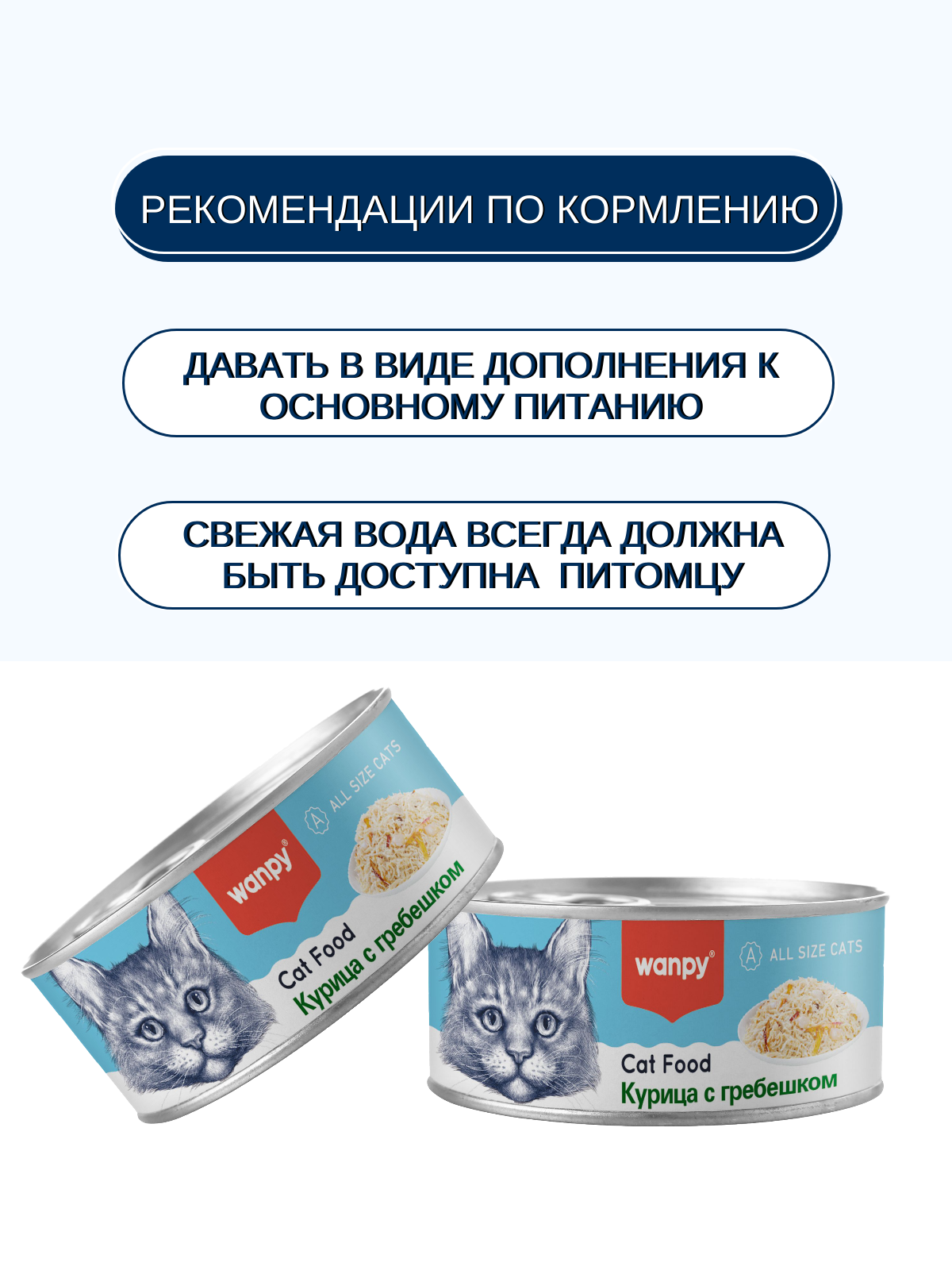 Wanpy Cat консервы для кошек "Курица с гребешком" - это высококачественный сбалансированный корм, который обеспечит вашего питомца необходимыми витаминами и минералами.