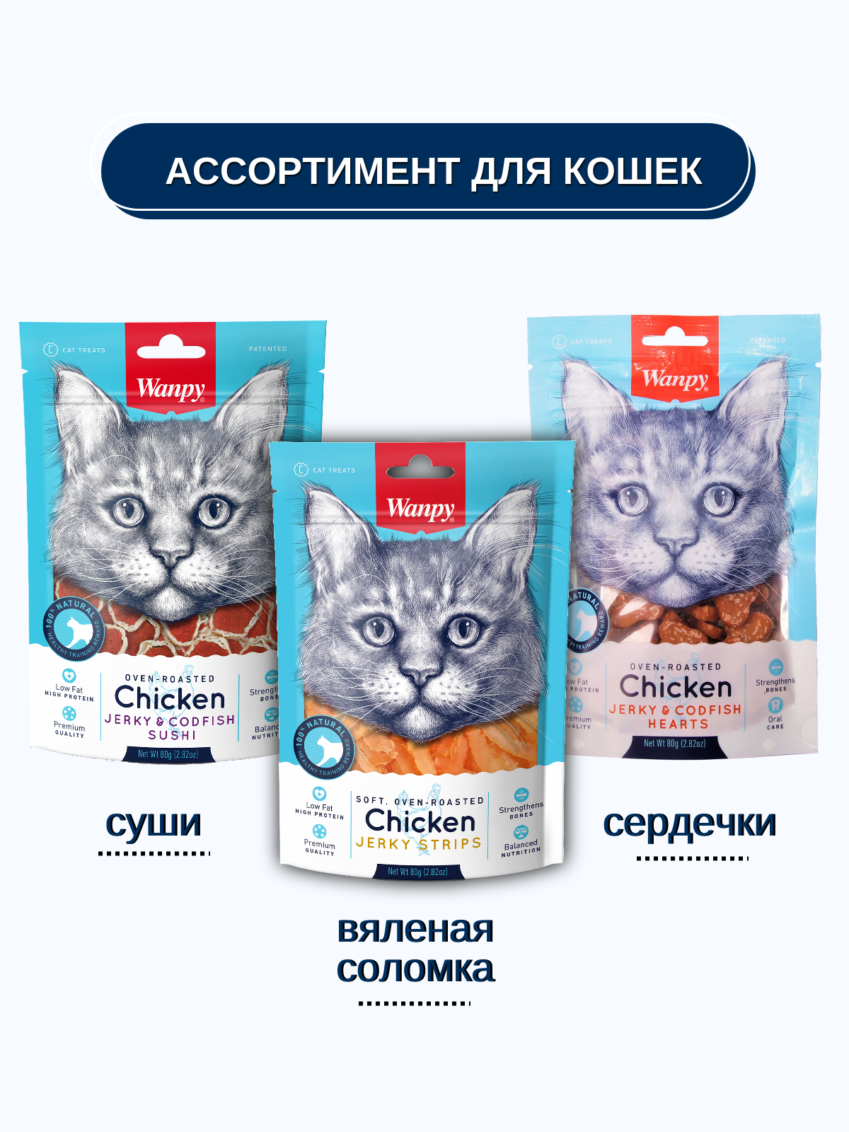Wanpy Cat лакомство куриная соломка мягкая - вкусное и натуральное лакомство для кошек.