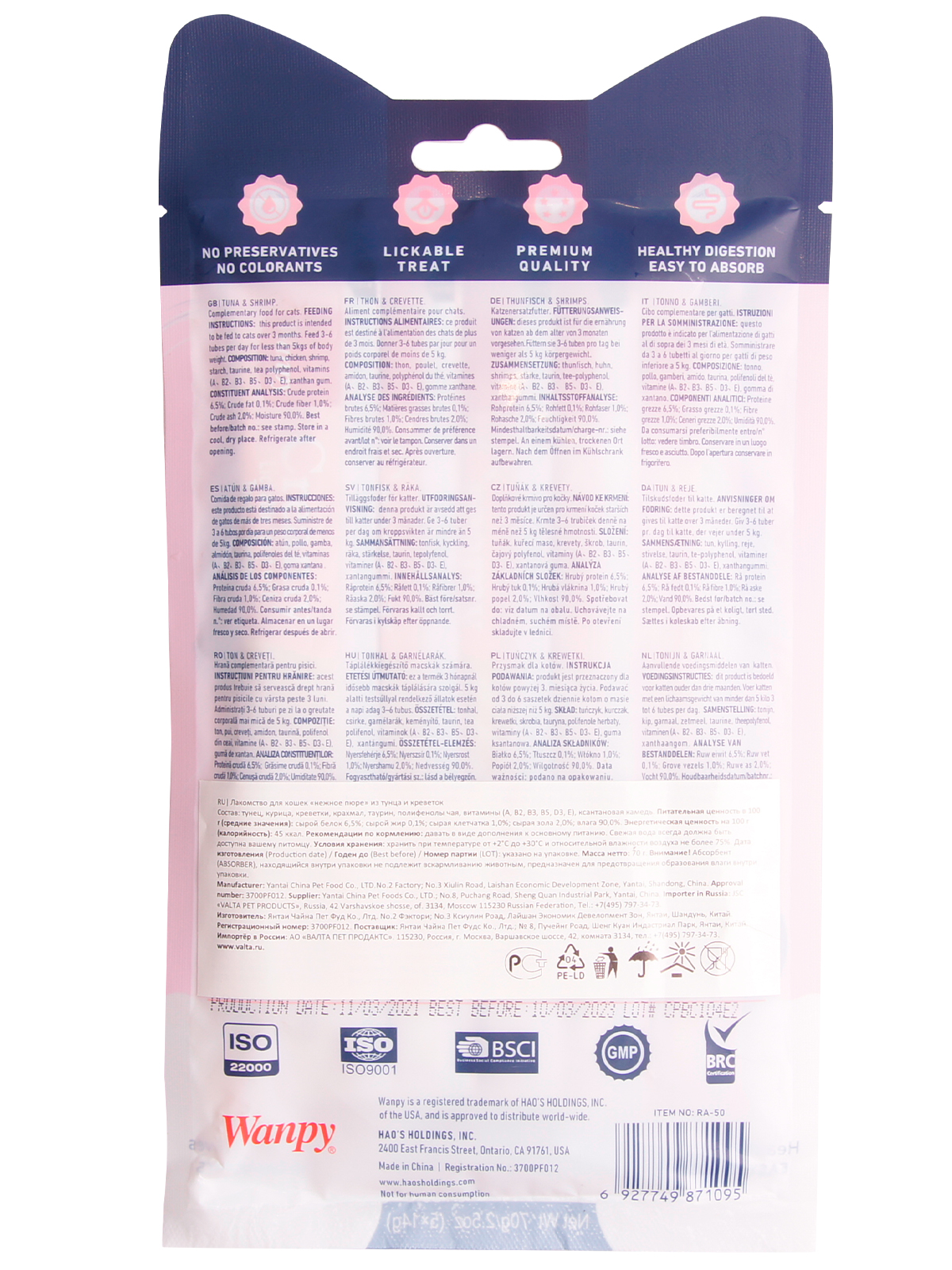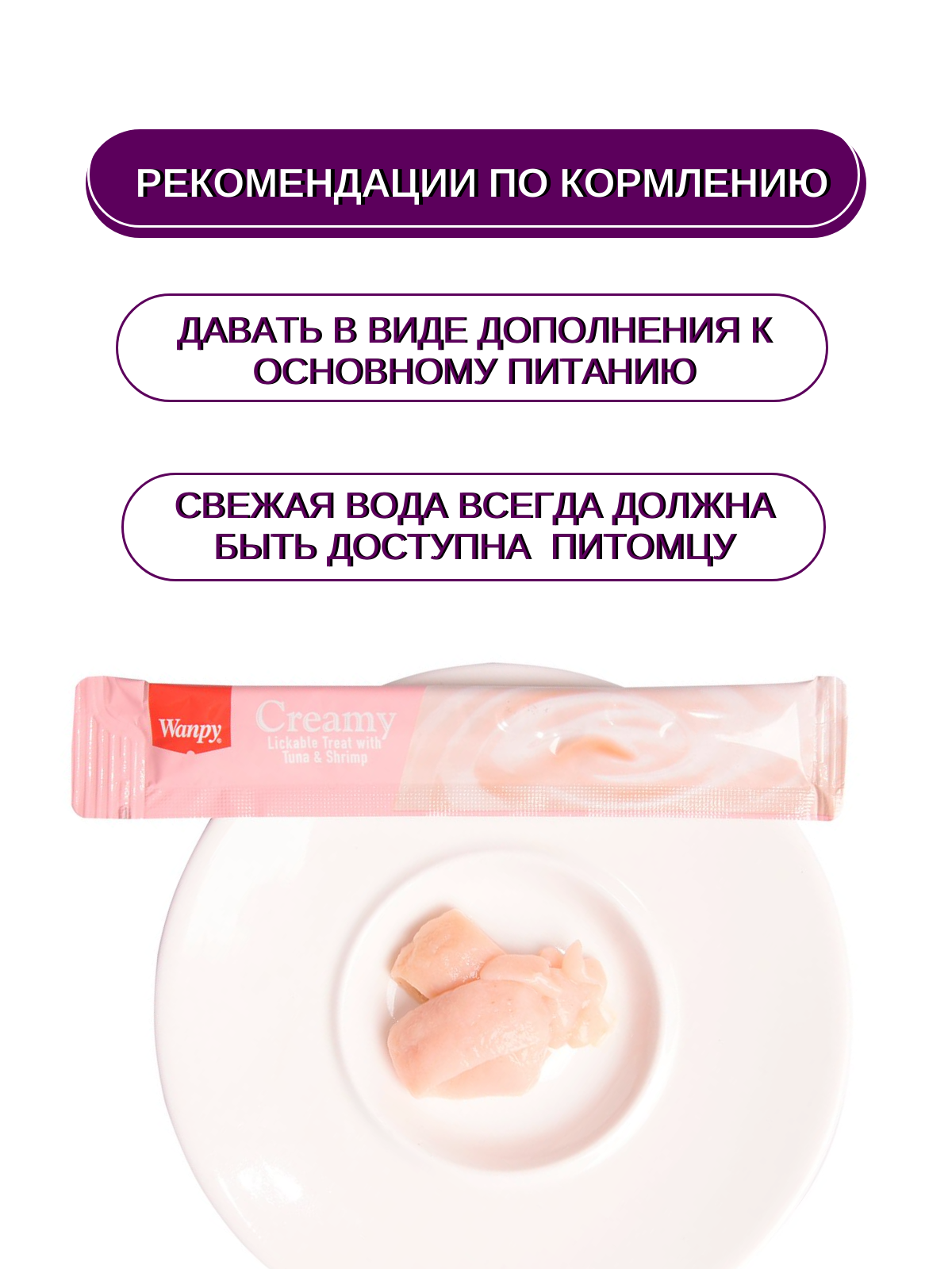 Wanpy Cat Лакомство для кошек "нежное пюре", тунец с креветками - это уникальное лакомство, которое не только порадует вашего питомца своим изысканным вкусом, но и обеспечит его необходимыми витаминами и минералами.