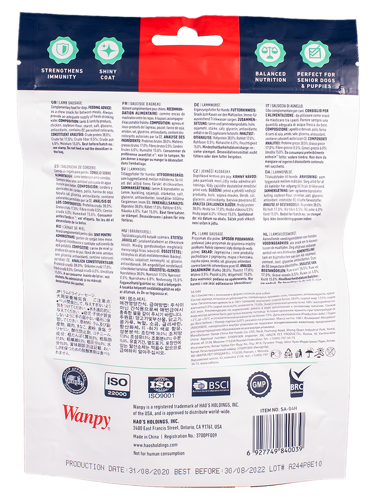 Wanpy Dog лакомство сосиски из мяса ягненка.